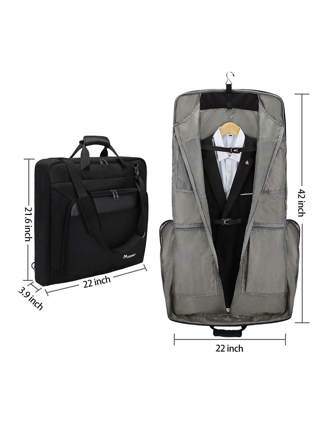- BOLSA DE TRAJE CONVENIENTE: Este elegante diseño de bolsa de traje Modoker mantiene la ropa fresca y libre de arrugas. Cuenta con muchos bolsillos organizados para guardar todos tus esenciales en una bolsa de traje plegable conveniente. Está hecha de materiales de alta calidad que la hacen más cómoda y resistente al peso. La bolsa viene con una correa de hombro desmontable para una variedad de métodos de transporte. Perfecta bolsa de mano para el viajero de negocios en movimiento.