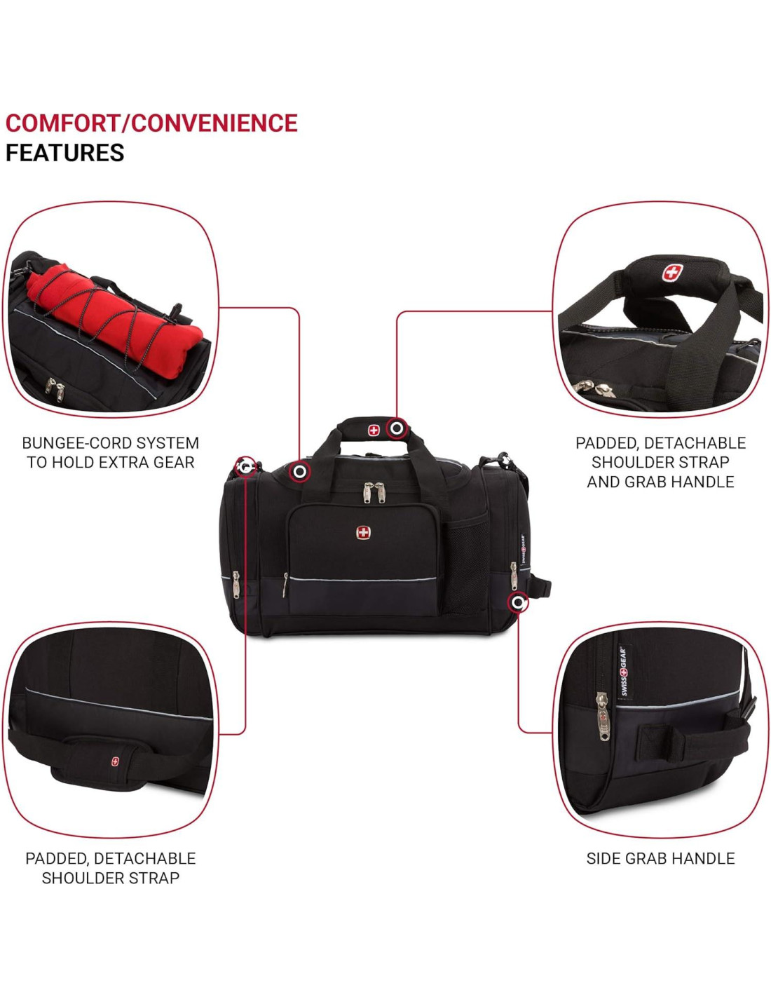 ¿Estás buscando una bolsa de viaje o de gimnasio confiable y espaciosa? No busques más, la bolsa de viaje y gimnasio SwissGear Apex para mujeres y hombres es la solución perfecta. La bolsa de viaje ideal para mujeres y hombres, esta resistente bolsa de gimnasio / fin de semana está hecha de poliéster duradero y resistente a la abrasión, diseñado para soportar un uso intensivo y condiciones adversas. Una bolsa de noche ideal para mujeres y hombres, esta bolsa de viaje plegable cuenta con un cierre de cremallera y un amplio compartimento principal, 2 bolsillos laterales y un bolsillo organizador frontal para guardar utensilios de escritura, bocadillos y llaves. Además, tiene un bolsillo de malla elástica para botellas de agua que te ayuda a mantenerte hidratado. El sistema de almacenamiento superior con cordón elástico es perfecto para guardar rápidamente artículos, como una chaqueta ligera o un paraguas. También puedes levantar y maniobrar esta bolsa de gimnasio / fin de semana para mujeres y hombres utilizando las asas superiores y laterales reforzadas, o llevarla sobre tu hombro con la correa de hombro ajustable y desmontable para disfrutar de movilidad sin manos. La bolsa de viaje SwissGear Apex es la solución perfecta para tus necesidades de viaje. Con esta bolsa de viaje de mano, puedes viajar con comodidad.