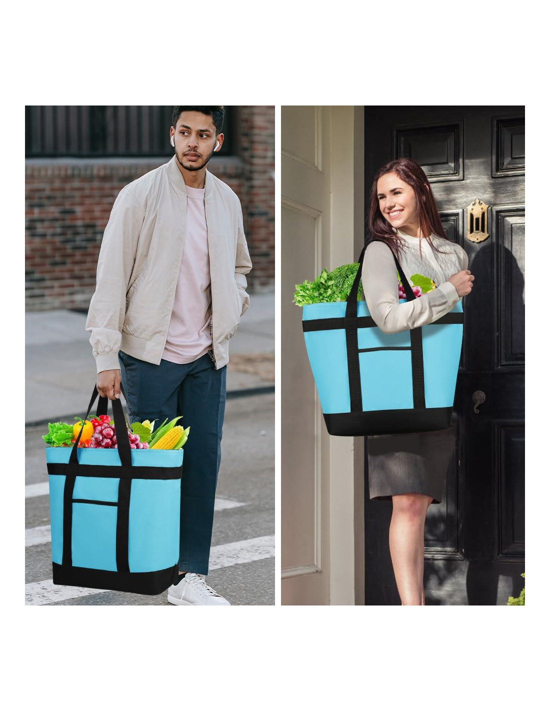 - [MULTIUSO] Las grandes bolsas de tela suaves funcionan para mujeres y hombres. La bolsa térmica de gran capacidad tiene múltiples funciones. También se puede usar como bolsa de transporte, entrega de comidas y pizzas, empaquetado de alimentos, compras de supermercado reutilizables, viajes a la playa, transporte de alimentos en coche, compras en carrito para comestibles, bolsa de catering para entregas de comida caliente/fría.