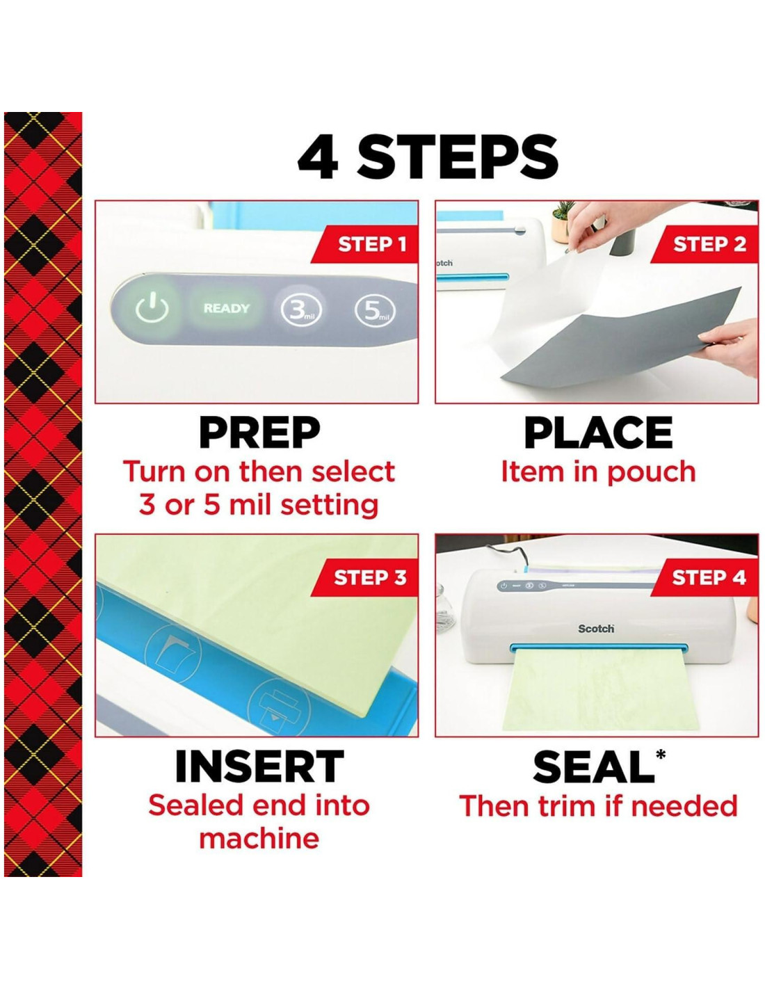 Las bolsas de laminado térmico Scotch protegen los documentos que manejas con frecuencia. Estas bolsas de laminado térmico de 5 mil de grosor son para uso con laminadoras térmicas. Las bolsas son transparentes para permitir que la información importante se muestre. Tamaño de 5-pulgadas x 7-pulgadas.