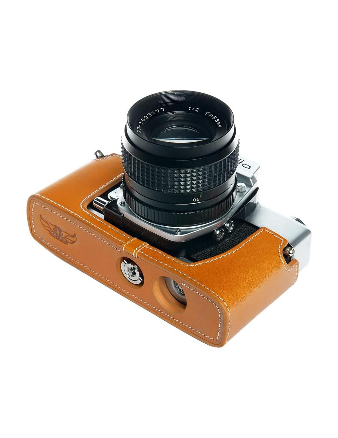 Esta funda de cámara está hecha de cuero de aceite de capa superior real, el diseño es simple y vintage, utiliza técnicas de tamaño metálico que la hacen muy ajustada al cuerpo de la cámara. El forro interior utiliza terciopelo de alto nivel para proteger el cuerpo de la cámara de rasguños y decoloración. El tornillo de la base inferior está hecho de cobre y se puede quitar fácilmente con una moneda. No necesitas quitar la funda cuando usas un trípode. Tiene un diseño especial para la cámara de película Minolta SRT 101 que facilita girar la pantalla y no afectará en absoluto la rotación de la pantalla. No necesitas quitar la funda cuando conectas líneas de datos. Contenido: 1 x funda de cámara, 1 x correa de mano de cuero genuino gratis, cámara no incluida. Material: cuero genuino.