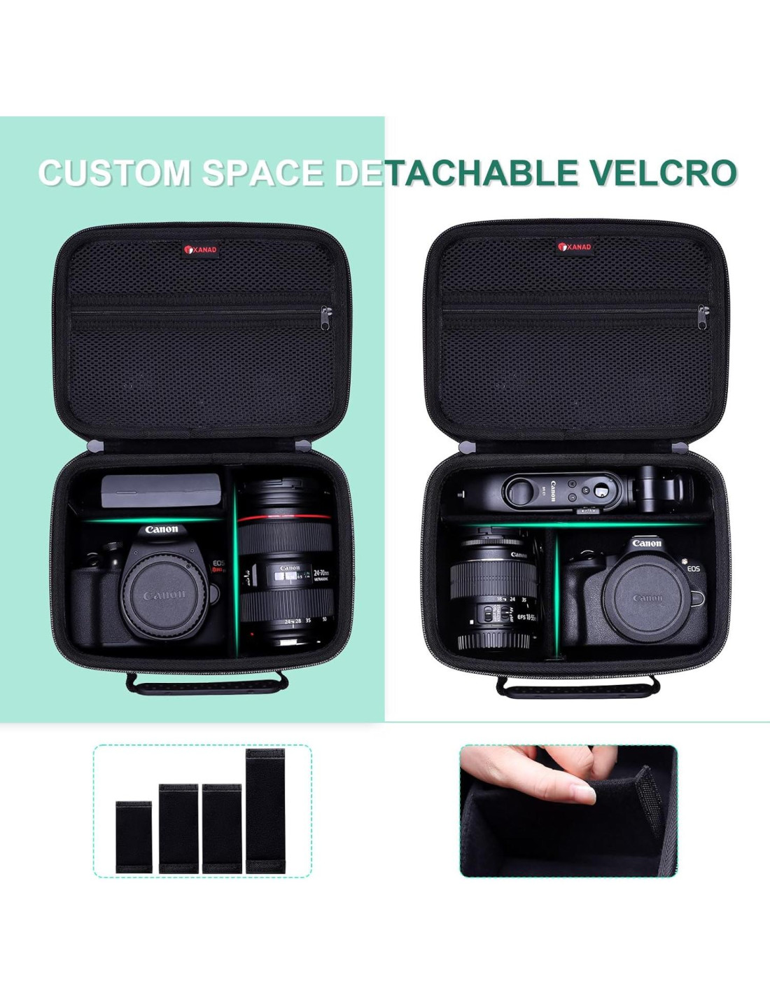 - Diseño de Espacio DIY: La funda canon r50 está equipada con 4 particiones móviles, por lo que puedes diseñar el espacio de almacenamiento según tu equipo y accesorios de cámara Canon. Dimensiones Exteriores: 23.9 cm x 17.3 cm x 11.2 cm. Dimensiones Internas: 21.8 cm x 15.2 cm x 7.9 cm