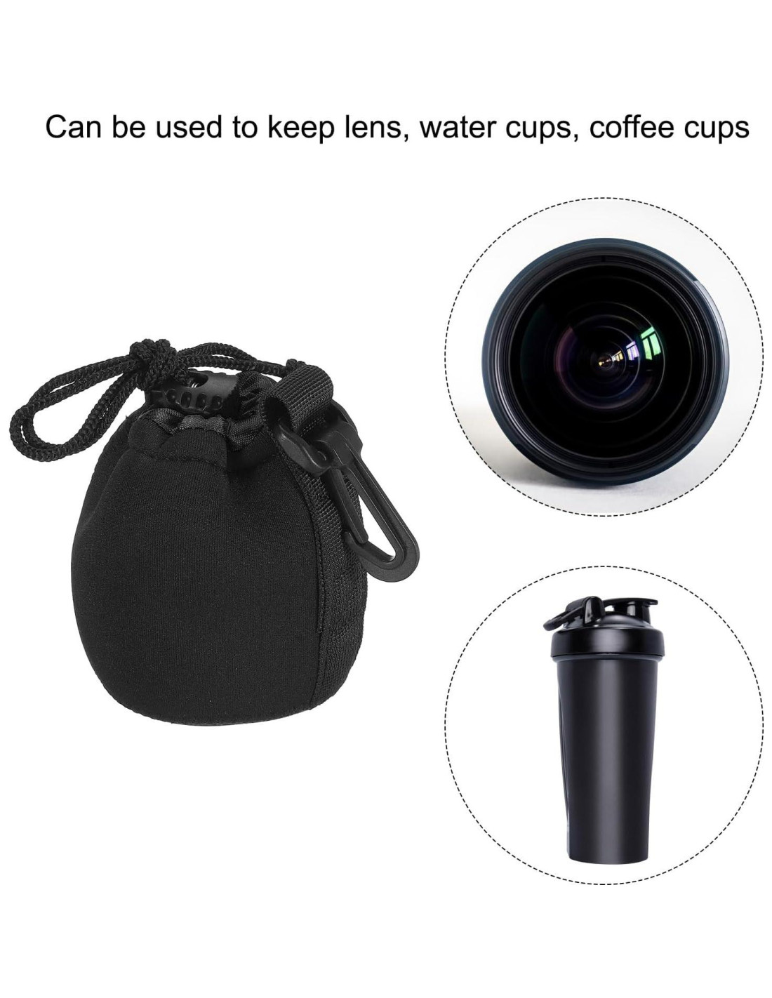 - La bolsa de lente de neopreno está hecha de neopreno para ser impermeable, a prueba de golpes y resistente al desgaste, que puede proteger tu lente de cámara de rasguños, golpes y polvo accidentales. Esta bolsa de cámara tiene múltiples usos, es adecuada para la mayoría de los lentes de diferentes marcas, y también se puede usar para mantener tazas de agua, tazas de café, etc. La bolsa de lente también tiene buena preservación del calor y efectos anti-escaldado.