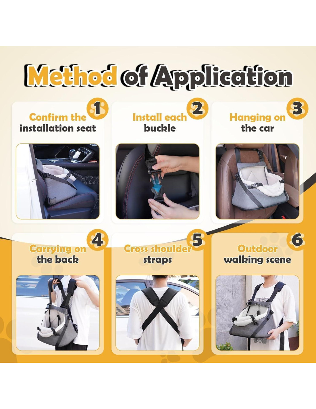 - Como Asiento de Coche para Perros/Transportadora de Perros: El asiento de coche para perros pequeños WOYYHO de hasta 3.6kg ofrece 2 formas de usarlo - Puede usarse como un asiento elevador de perro colgante/colocado o quitarse fácilmente para usarse como una transportadora de cachorros, y se puede llevar de frente o de lado, perfecto para viajes largos/cortos con mascotas