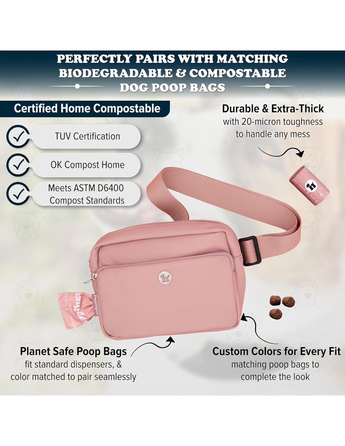 - COMBINA PERFECTAMENTE CON BOLSAS DE CACA COMPOSTABLES A JUEGO: Duraderas y extra gruesas con resistencia de 20 micrones para manejar cualquier desorden. Certificadas como compostables: certificación TUV, OK Compost Home, y cumplen con los estándares de compostaje ASTM D6400. Compactas y portátiles para adaptarse a dispensadores estándar, y a juego para combinarse sin problemas con la bolsa de paseo para perros Puppington y el pouch para golosinas en Rojo Rubí, Teal Laguna y más. Las bolsas de caca presentan arte original de garabatos de perrito: ¡quién sabía que las bolsas de caca podían ser tan divertidas!
