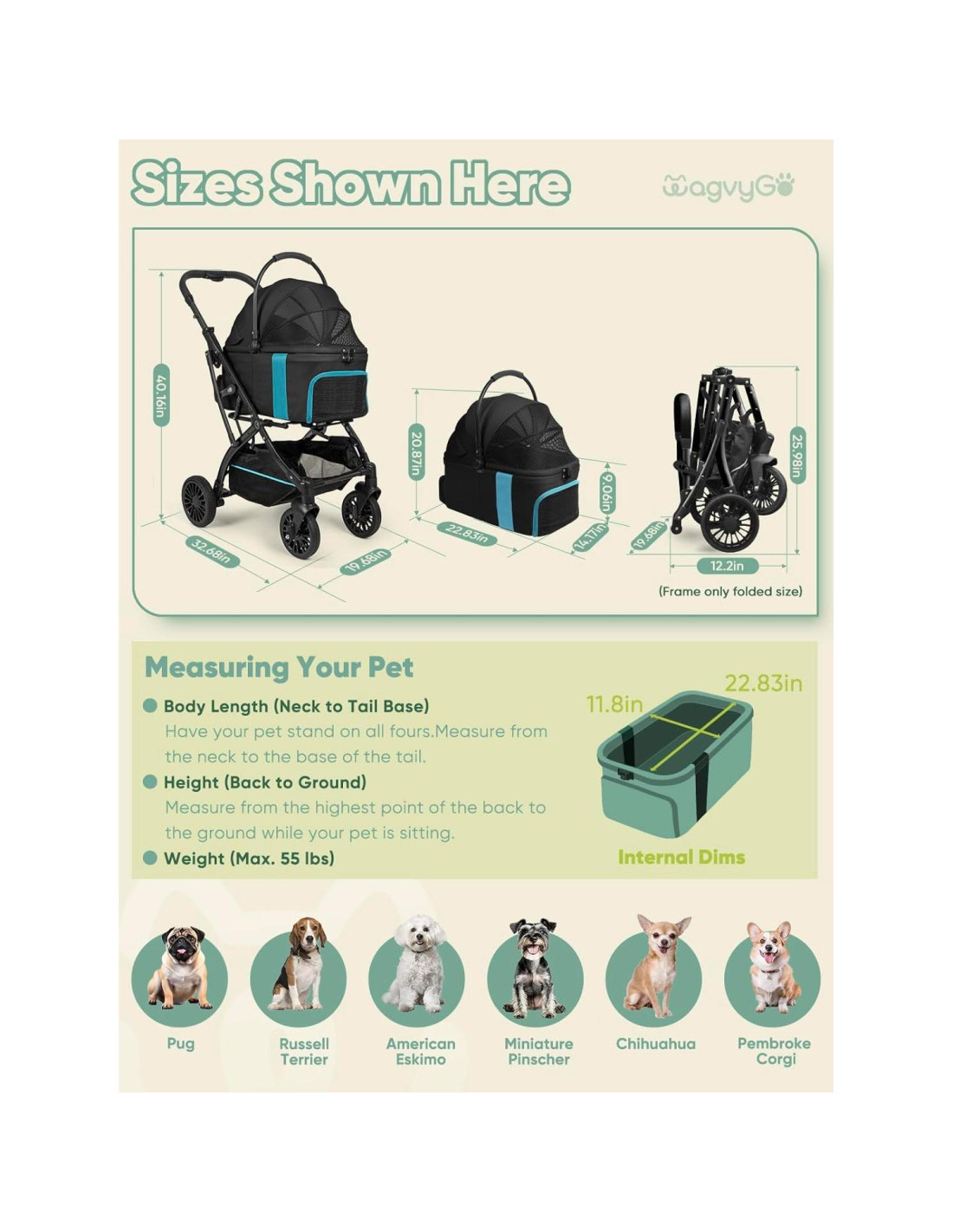 - Características adicionales: Carrito para Mascotas 5-en-1, Todo-en-Uno Plegable Sin Desmontar la Transportadora, Transportadora Impermeable Desmontable