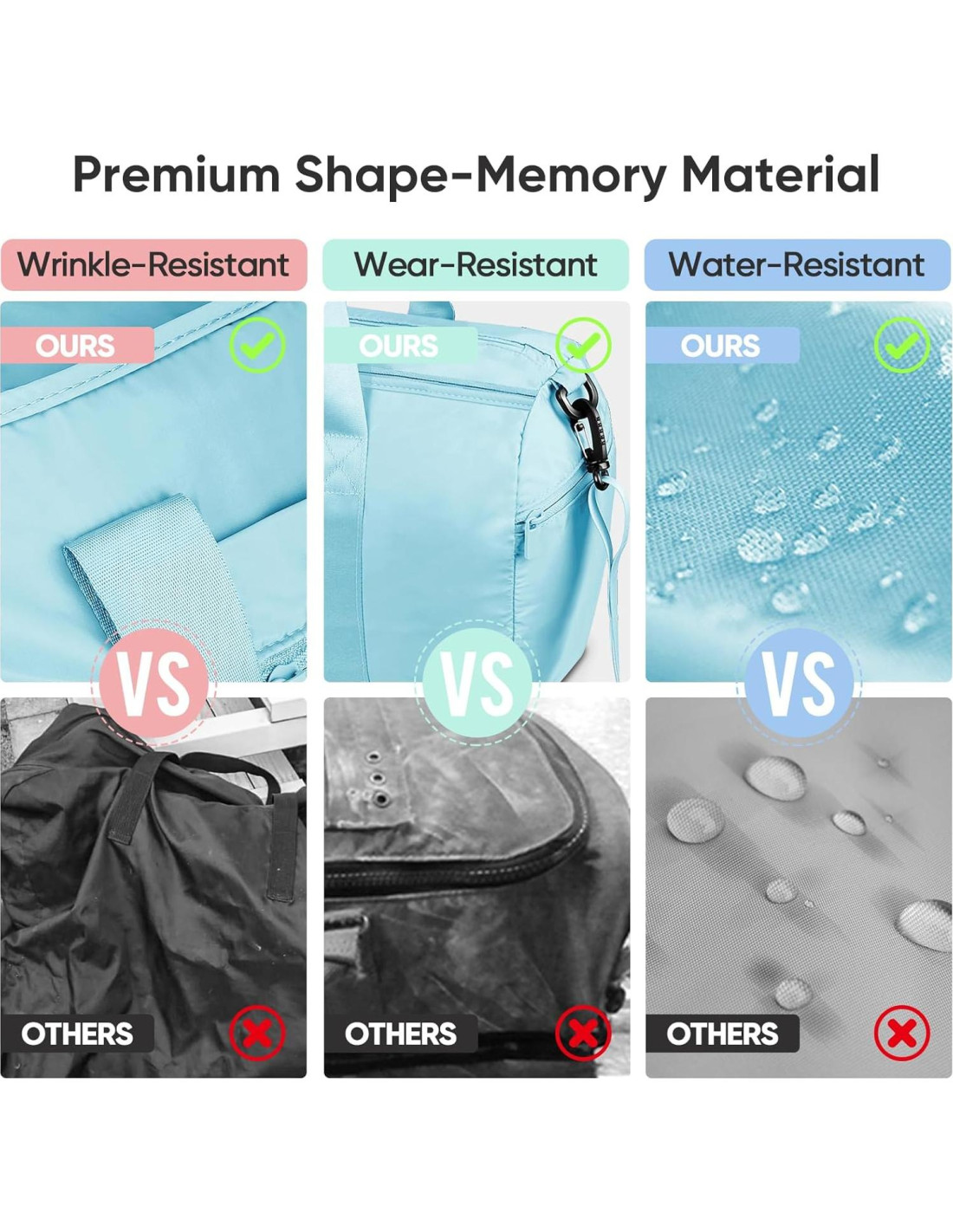 - [BOLSA LIGERA E IMPERMEABLE] Nuestras bolsas duffel están hechas con tela Twill 294T. Son suaves, lavables, impermeables, sin arrugas y resistentes al desgaste. El exterior impermeable mantiene tu ropa y artículos secos; se puede usar tanto en interiores como en exteriores. Bolsa duffel con asas y correa de hombro removible con hebilla ajustable.