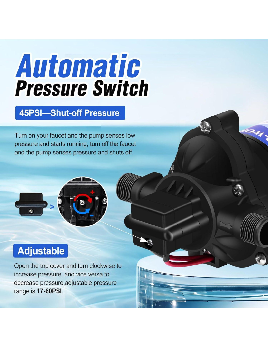 - Elección Ideal: Fácil de instalar y transportar. Pequeña bomba de agua en la mano. Es lo suficientemente versátil como para reemplazar bombas de agua dulce en todo tipo de RVs, y también se puede usar para barriles de lluvia, rociadores de manguera de jardín, duchas exteriores, sistemas de agua fuera de la red, y más. Haz que el agua trabaje para ti