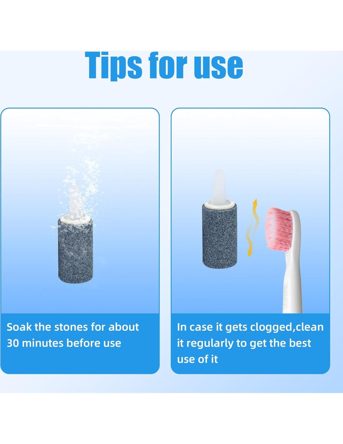 - Dimensiones del cilindro de piedra de aire: 1.4 cm D x 2.54 cm H; Se adapta a tubos de aire estándar de 3/16 pulgadas (0.48 cm)