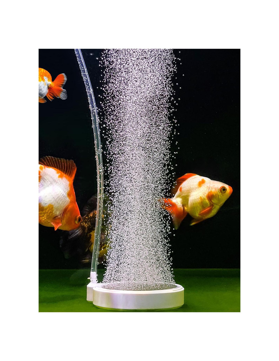 - Produce Burbujas Pequeñas y Silenciosas: El difusor de burbujas libera aire comprimido en el agua en forma de burbujas pequeñas. Esto aumenta el área de contacto y la tasa de intercambio entre el aire y el agua, proporcionando suficiente oxígeno para sus peces sin crear ruido excesivo.