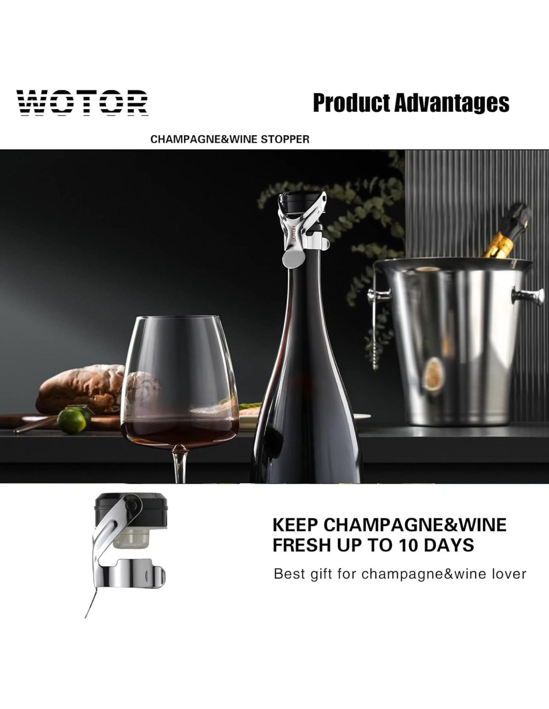 - [Mantenimiento Perfecto de la Frescura] : El eje central de silicona bloquea firmemente la boca de la botella y aísla el aire en la botella y la convección del aire fuera de la botella, lo que mantiene mejor el sabor y las burbujas del vino abierto, 100% sin fugas, mantiene el vino con un sabor fresco hasta diez días