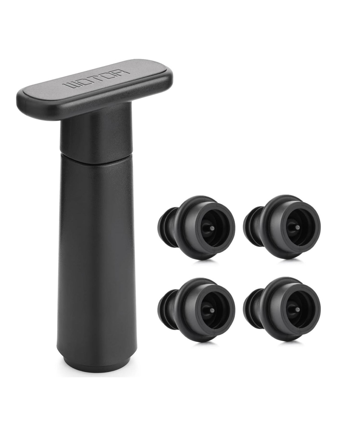 - Materiales Premium: Nuestra bomba de vino al vacío está hecha de plástico de alta calidad y viene con cuatro tapones reutilizables, asegurando seguridad y durabilidad