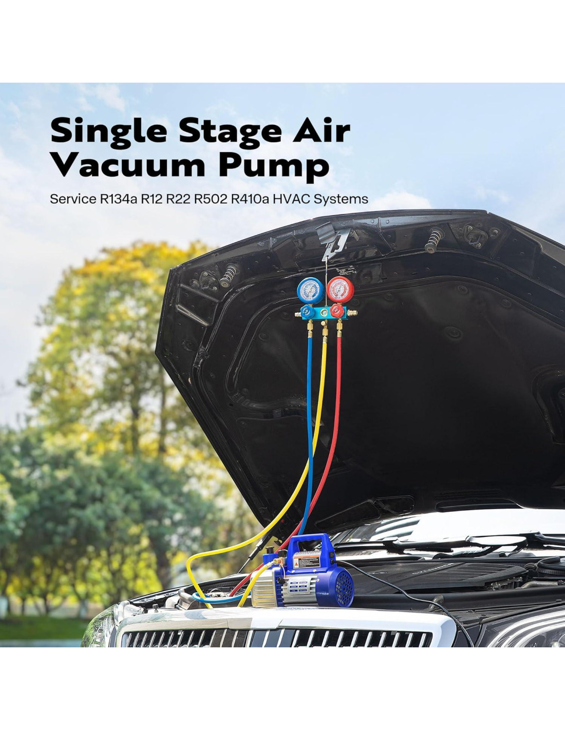 - TODOS LOS ACCESORIOS NECESARIOS: Incluye una bomba de vacío de una etapa, una botella de aceite, un termómetro y un juego de manómetros; Perfecto para aire acondicionado automotriz, trabajo de HVAC, refrigeración y otras aplicaciones que requieren un alto vacío de una bomba compacta