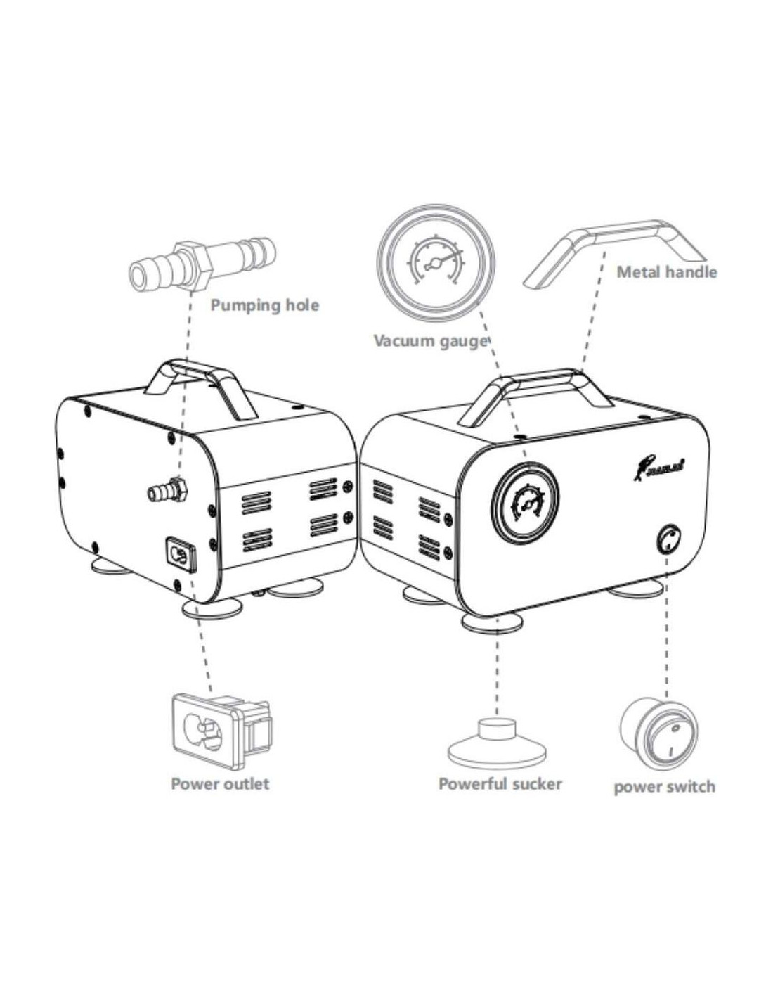 - Puerto de escape del manómetro de vacío sin aceite. El diseño único de película de cuero reduce el desgaste y aumenta la vida útil. Proporciona un ambiente de vacío limpio, no produce contaminación al sistema.