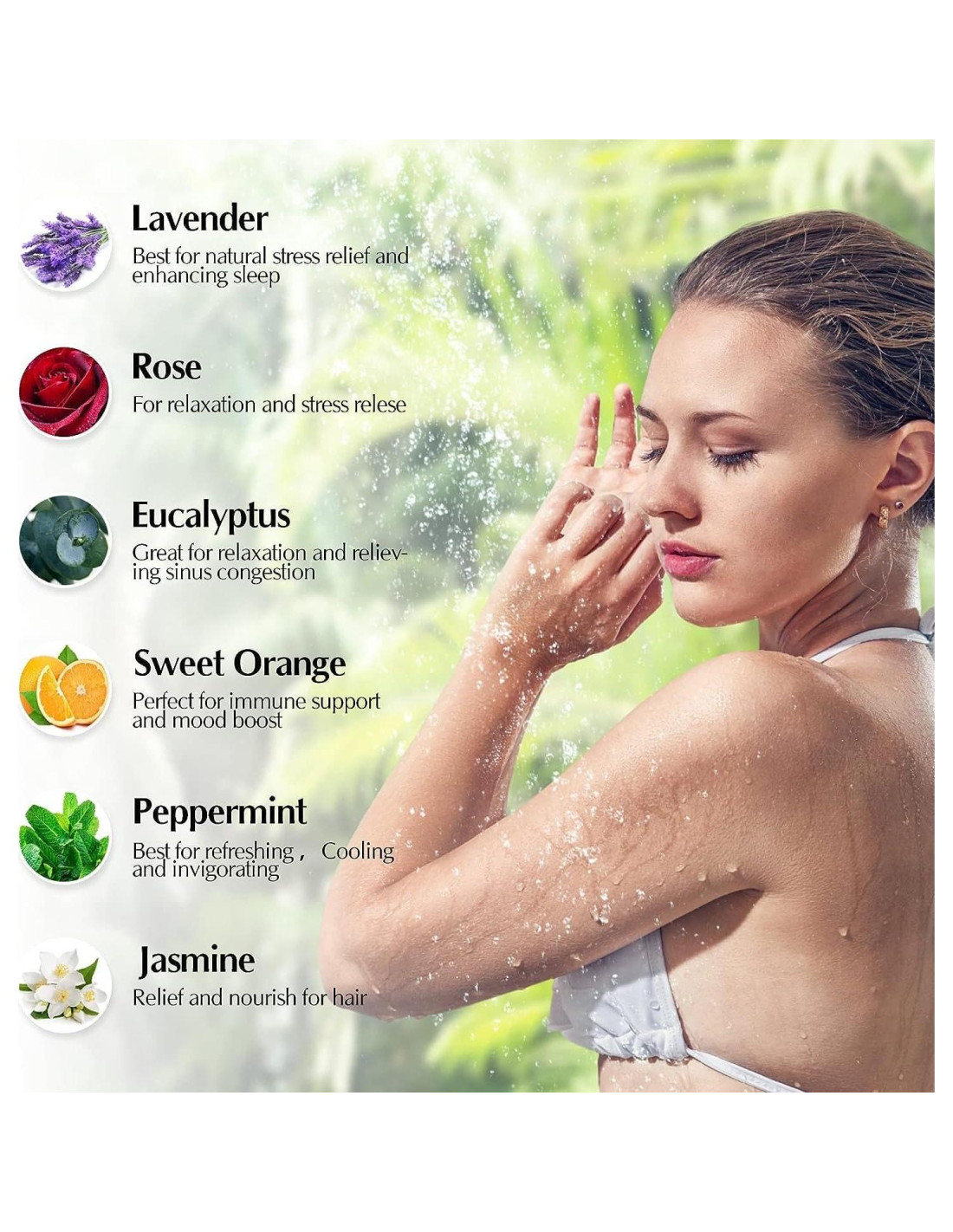 - Solo utiliza aceites esenciales puros de alta calidad y fragancias naturales, proporcionando todos los beneficios de la aromaterapia natural. Después de un largo día, relájate con las Bombas de Vapor de Aromaterapia, permitiéndote relajarte y entrar en un oasis pacífico, disfrutando de ocho deliciosas fragancias florales: Lavanda, Rosa, Jazmín, Menta, Eucalipto, Naranja de Vainilla. Elige tu fragancia favorita para comenzar tu propio tiempo de spa privado.