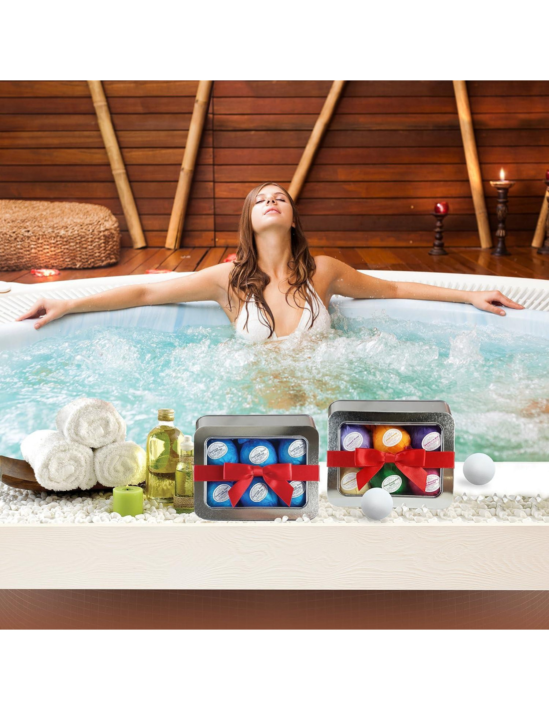 Un Paquete de Regalo Sensual de Bombas de Baño de Aceite Esencial Hidratantes Seis Mezclas de Aceite Esencial para Tratar Tus Sentidos! Cada Bomba de Baño de 2.5 oz (70.87 g) Está Envuelta Individualmente y Presentada en una Lata de Regalo Única *Amanecer de Yoga - Aceites de Limón, Lima, Naranja y Bergamota *Jardín de los Dioses - Aceites de Lavanda, Geranio y Lima *Alivio de Congestión Sinusal - Aceites de Eucalipto, Menta, Lavanda, Pino y Ciprés *Pomelo Energizante Rosa - Aceite Esencial de Pomelo *Mamás Estresadas - Aceites de Lavanda, Mejorana y Ylang *Sorpresa de Vainilla - Aceite Esencial de Vainilla -Nuestras Bombas de Baño son divertidas, fragantes y dejan tu piel ultra-hidratada! - Coloca una de nuestras bombas de baño efervescentes y nutritivas en tu agua de baño y observa cómo explota en una bola giratoria y fragante de efervescencia hidratante! - Nuestras bombas de baño de tamaño regular son aproximadamente 2oz (56.7 g) y son del tamaño de una pelota de golf - No están coloreadas, por lo que no tintarán tu bañera ni tu piel - Sin embargo, son un producto de baño altamente adictivo que seguramente te encantará! ¡Disfruta! -¿La mejor parte? ¡Sin anillo de aceite alrededor de la bañera! - Estos maravillosos tratamientos de baño te brindan todos los increíbles beneficios del Aceite de Girasol Orgánico, Manteca de Cacao y Manteca de Karité Orgánica sin "ensuciar" la bañera! ¡Date un capricho y disfruta de tus sentidos esta noche! Ingredientes 100% Naturales y Orgánicos Haz clic en el botón Agregar al carrito ahora. ¡Es un gran regalo para cualquier ocasión y las fiestas! Satisfacción garantizada