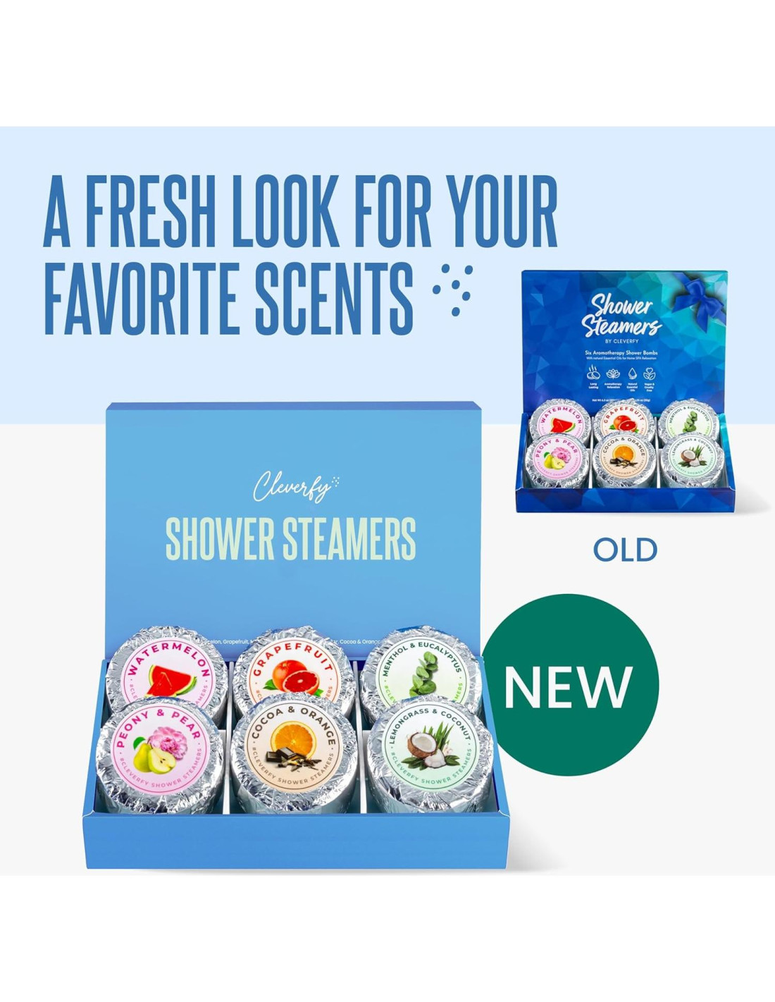 - Sensacional: Este paquete de 6 tabletas de vapor de ducha relajantes presenta los sublimes aromas de 1x Sandía, 1x Pomelo, 1x Mentol y Eucalipto, 1x Peonía y Pera, 1x Cacao y Naranja, y 1x Hierba de Limón y Coco. Selecciona uno y consiéntete.