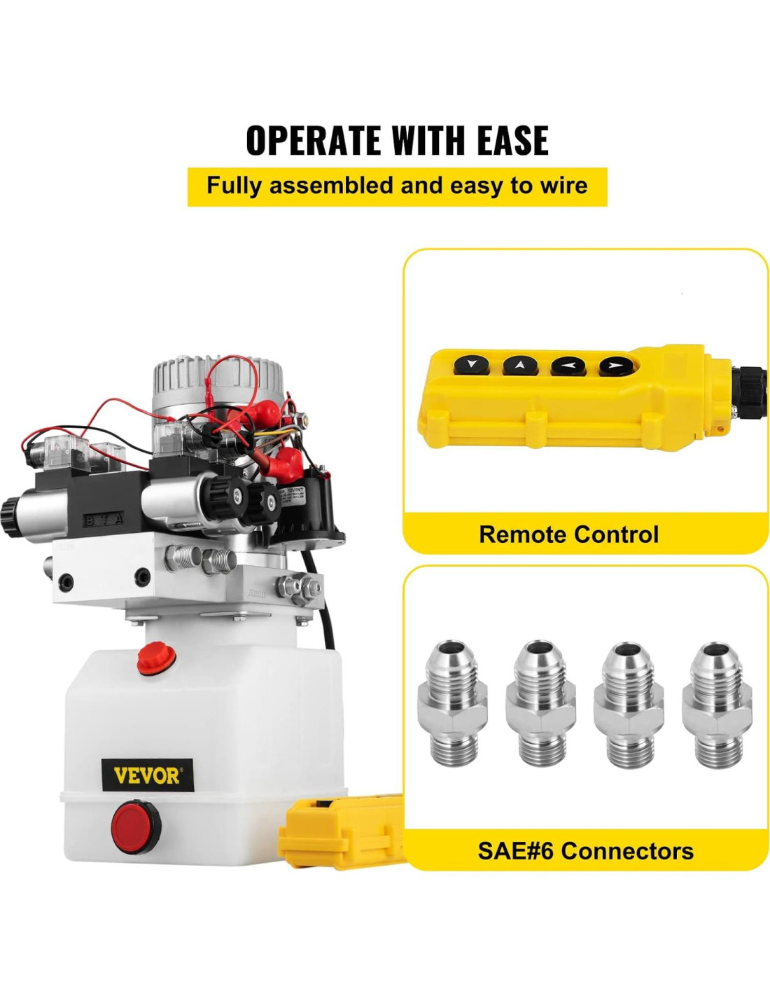 - Fácil de Usar: Esta unidad de potencia hidráulica de 12V llega completamente ensamblada. El cableado es simple y viene con instrucciones de operación. Se incluyen dos conectores SAE#6 adicionales y un pendant desmontable de 4 botones (15 pies) en el paquete.
