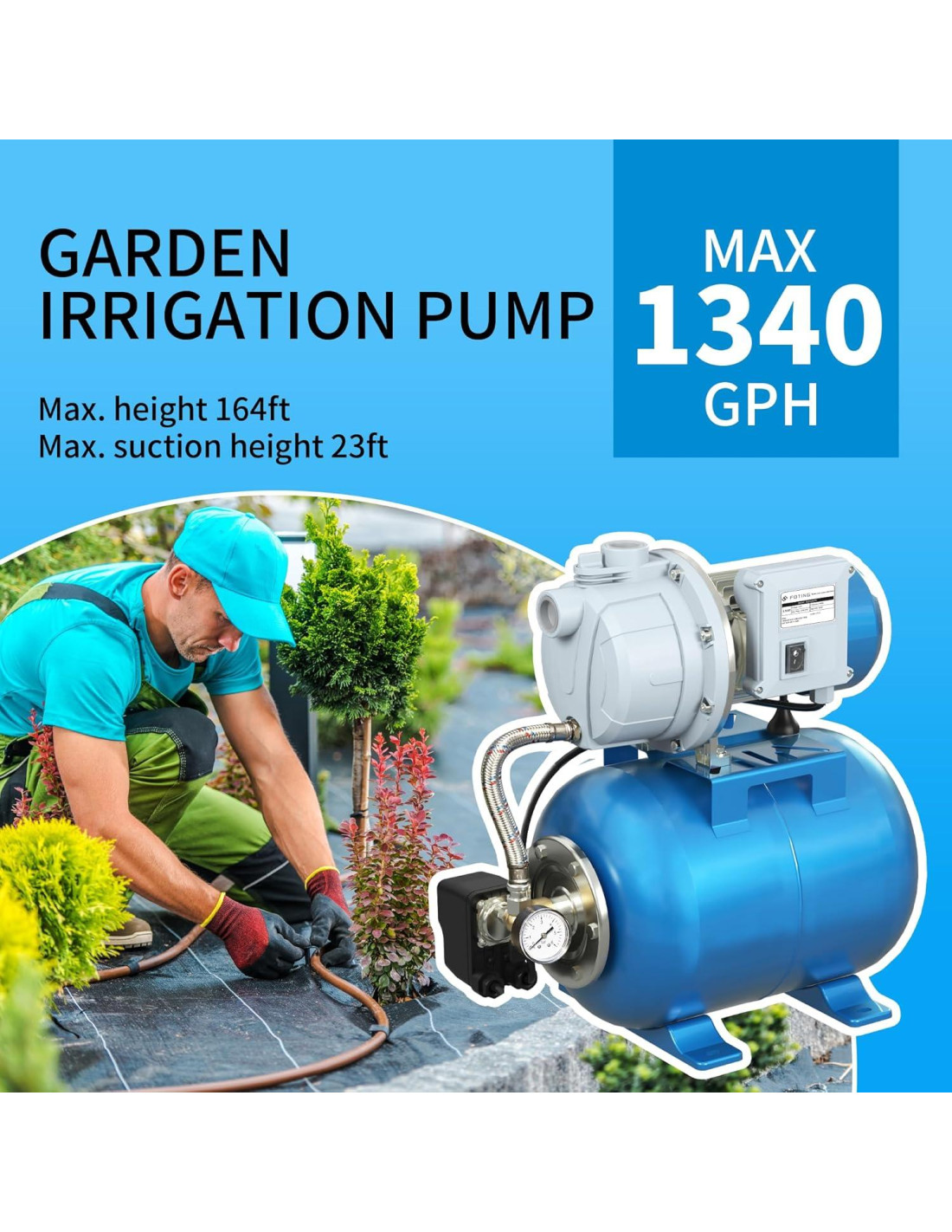 - [Amplia Aplicabilidad] La bomba de riego es ideal para regar céspedes, jardines, granjas o cabañas estructuras agrícolas, así como otras aplicaciones domésticas. La bomba de agua también puede conectarse firmemente al sistema de tuberías (como el suministro interno de agua). También es perfecta para la presurización de tuberías y el transporte de agua.