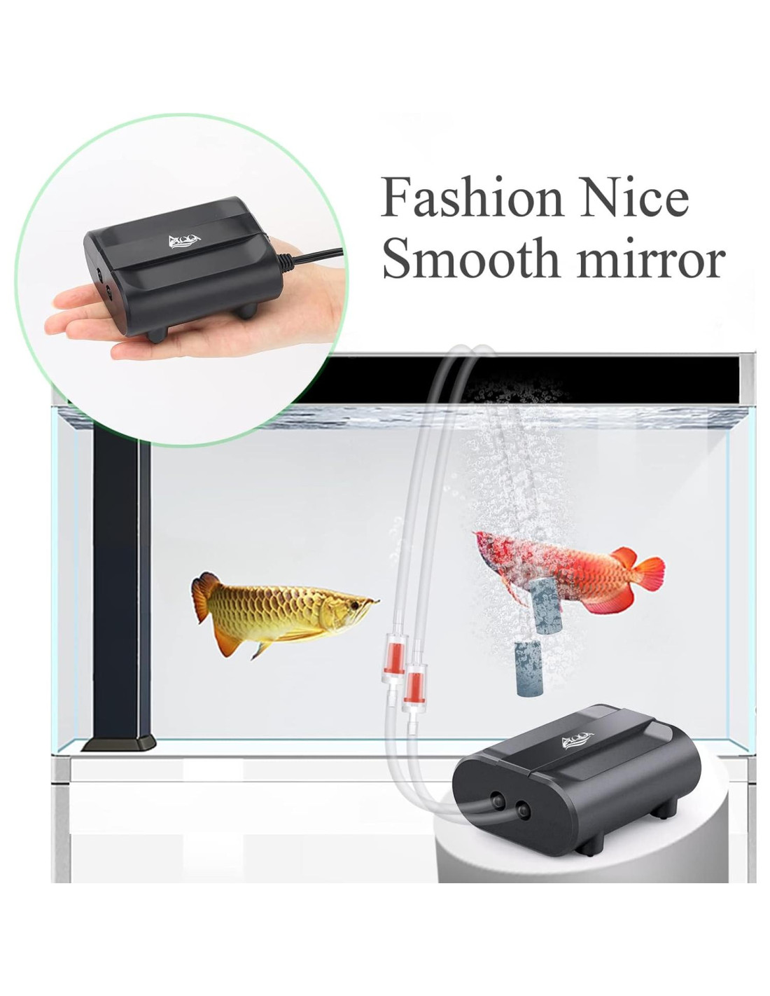 - Tasa de Flujo Ajustable: Gire el botón en la parte superior para ajustar el volumen de aire, satisfaciendo las necesidades diarias de oxígeno de su acuario; Aumenta los niveles de oxígeno en su acuario y ayuda a mantener a sus peces saludables