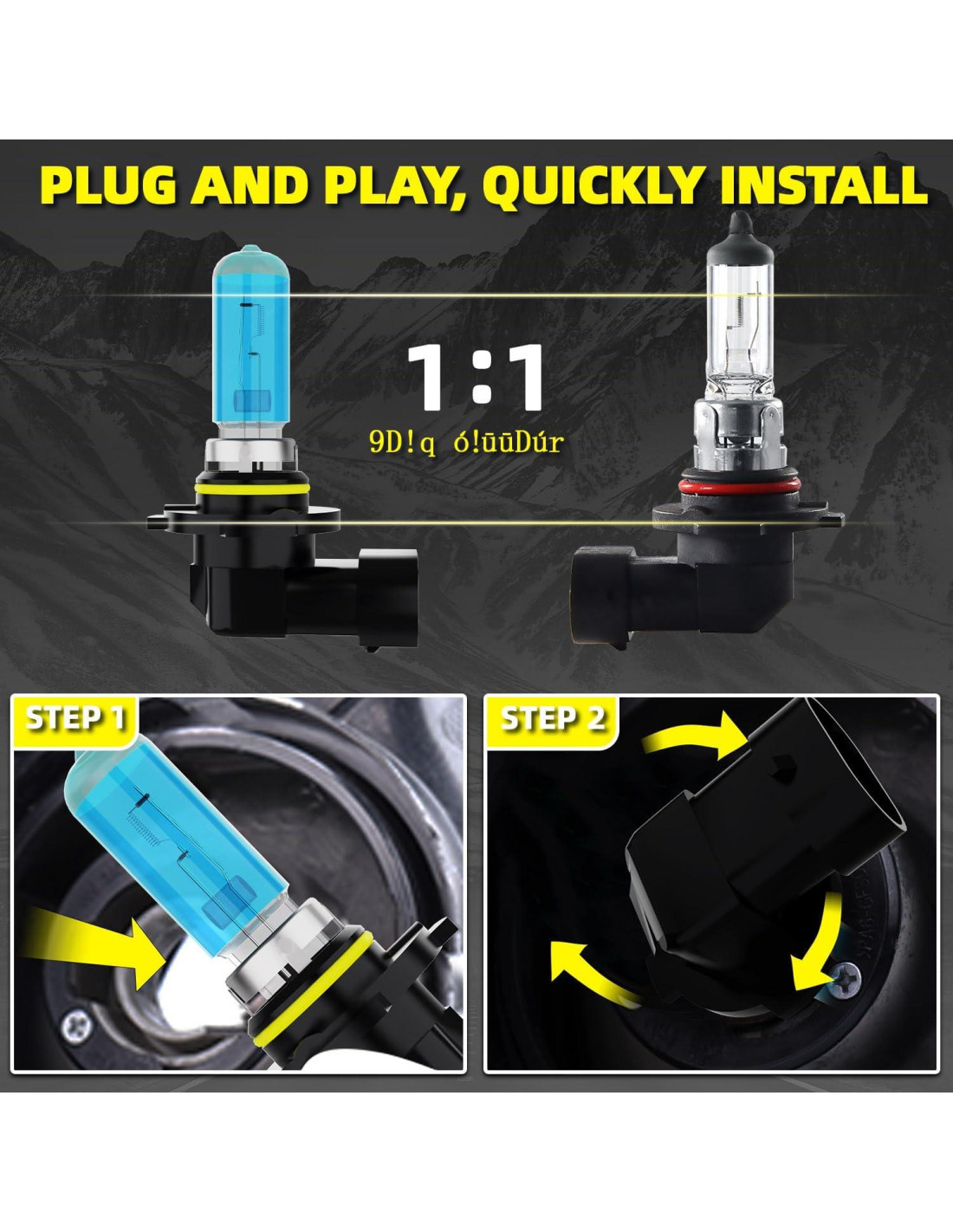 - Luz blanca 5500K: nuestra combinación de bombillas de alta y baja intensidad 9005 9006 es super brillante en comparación con la bombilla halógena de serie. Con una temperatura de color blanca de 5500K que se asemeja a la luz natural del día. Mantiene un alto nivel de visibilidad.