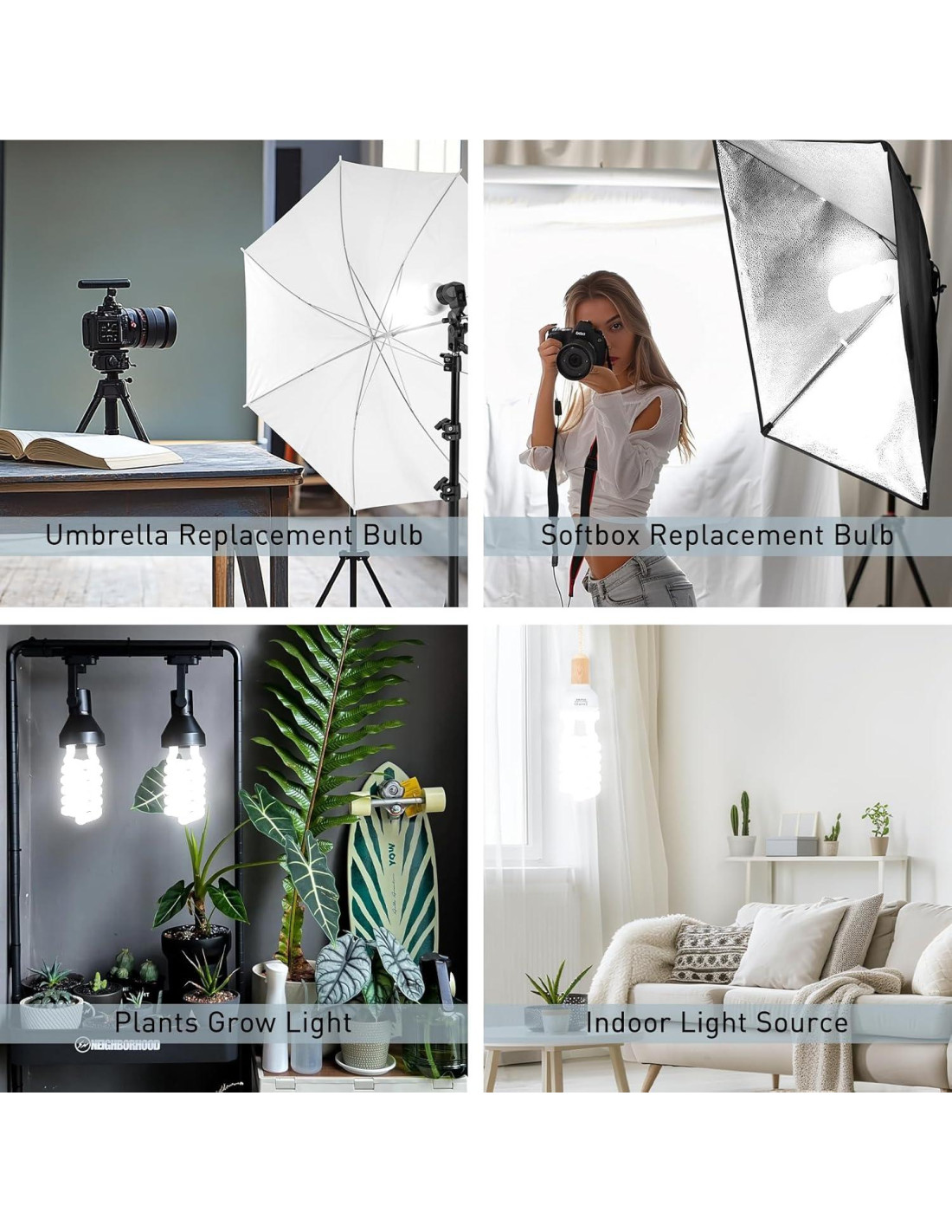 - 4.Uso Amplio: luces fotográficas de 135w para fotografía, luces de estudio, luces de cámara y iluminación de video. Experimenta bombillas de fotografía de 135W 5400K de temperatura de color potentes