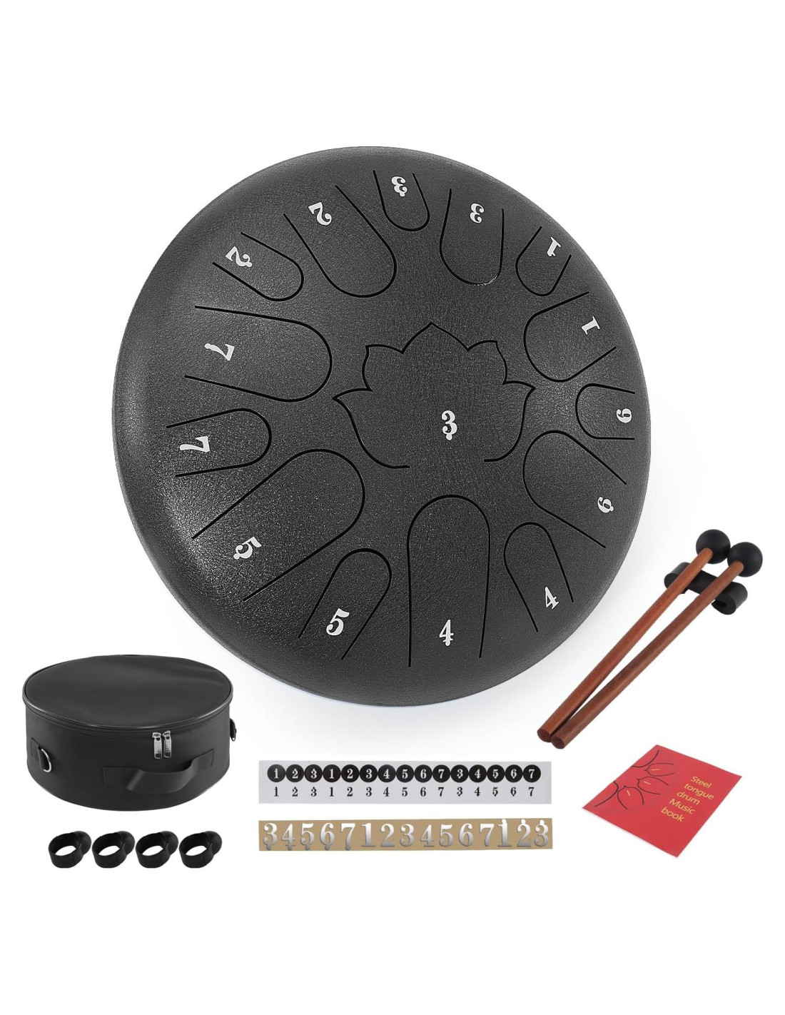 - GRAN MULTI NOTA: El tambor de lengua de acero de 12 pulgadas tiene 15 notas para más canciones. Adecuado para manos de adultos y ofrece una experiencia de juego diferente y es fácil de aprender.