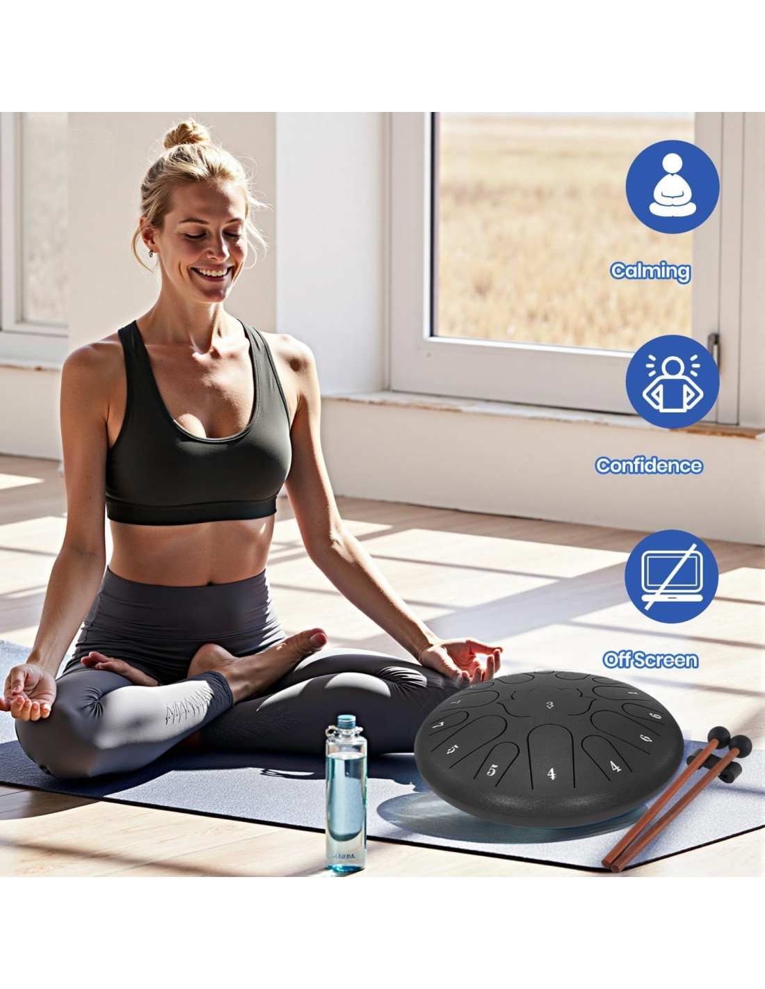 - AMPLIA GAMA DE USOS: Los tambores handpan pueden hacer un sonido suave, pueden usarse como tambor de lluvia para el exterior, también se pueden usar para meditación de yoga. Ayuda para dormir, sanación espiritual, iluminación en la educación temprana, etc.