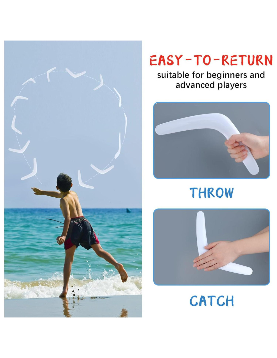 - Seguro y Duradero: hecho de plástico seguro y duradero, estos juguetes boomerang priorizan la seguridad sin comprometer la durabilidad; Nuestros boomerangs están diseñados para soportar innumerables lanzamientos y atrapadas, haciéndolos seguros para jugar y asegurando un uso prolongado y acción de vuelo segura