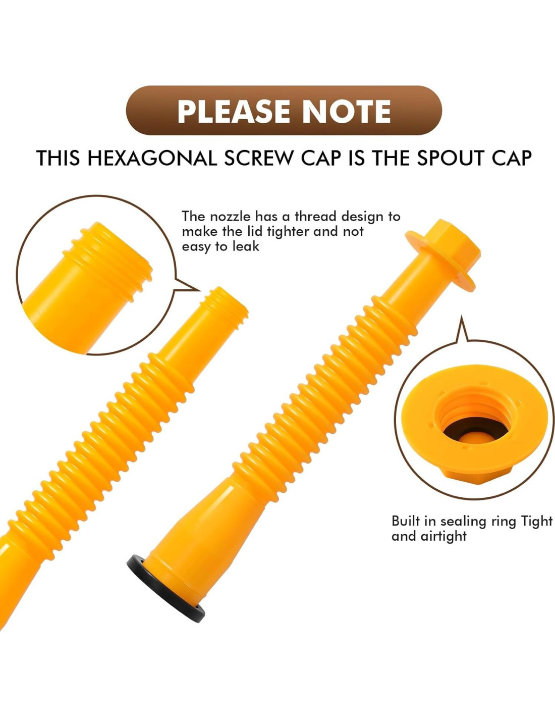 - Reemplazo de boquilla de lata de gas: Nuestro kit de boquilla de lata de gas es más compatible y la longitud de la manguera es más larga, para la mayoría de las latas de gas de 1/2/5/10 galones. La longitud total de la boquilla es de 20.6 cm (8.1 in), lo que es más conveniente y flexible de usar. Por favor, mide el tamaño de la boca de tus latas de gas antes de comprar.