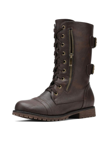- Diseño con cordones: Disfruta de un estilo atemporal con estas botas de combate para mujeres. Estas botas presentan una silueta clásica de bota militar y un diseño con cordones que añade un toque atrevido.