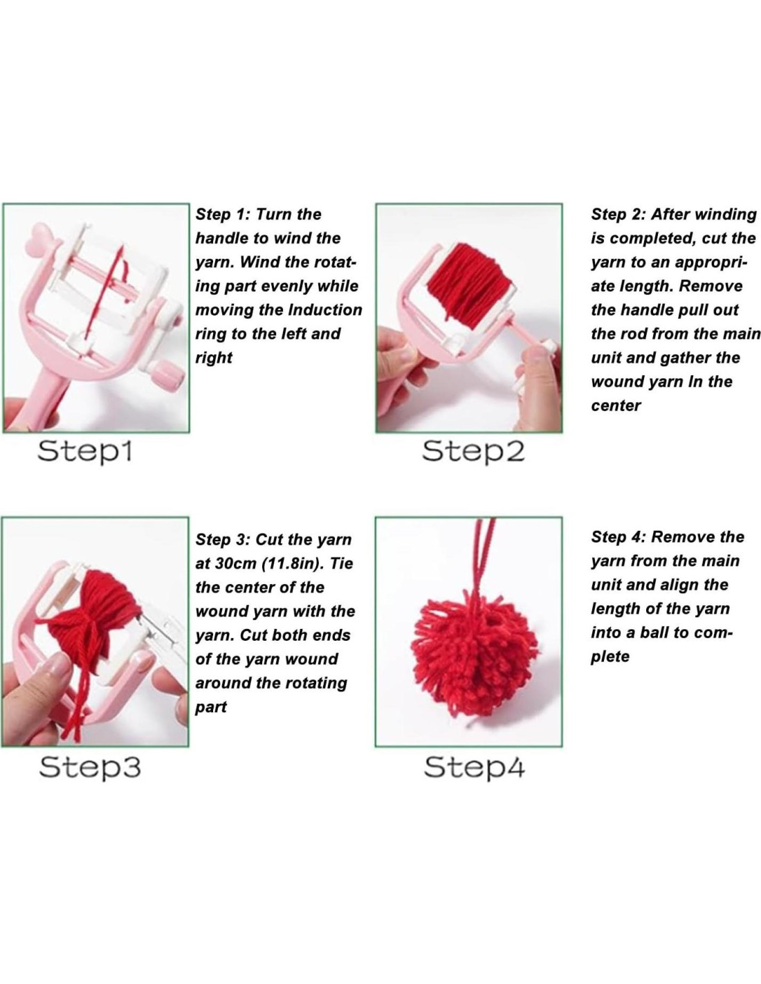- Proceso de manualidades simple: ¡Comience en poco tiempo! Simplemente envuelva su hilo alrededor de los brazos del hacedor de pompones, tire del centro con fuerza para asegurar y recorte el exceso con tijeras para un acabado impecable. ¡Hacer pompones nunca ha sido tan fácil!