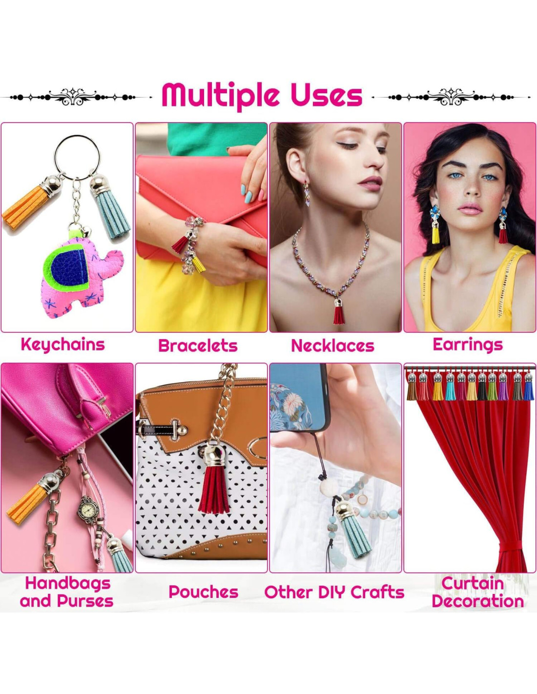 - AMPLIAMENTE UTILIZADOS: Estas borlas para hacer joyería son tan lindas que se pueden aplicar a muchas ocasiones como blanks de llaveros acrílicos, anillos de llaves, llaveros, aretes, collares, pulseras, bolsas, cortinas, correas de teléfono celular y otros proyectos de hacer joyería de bricolaje