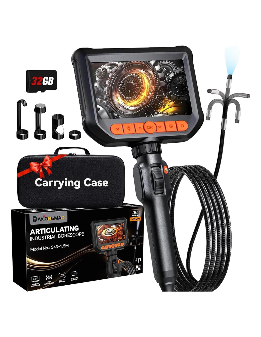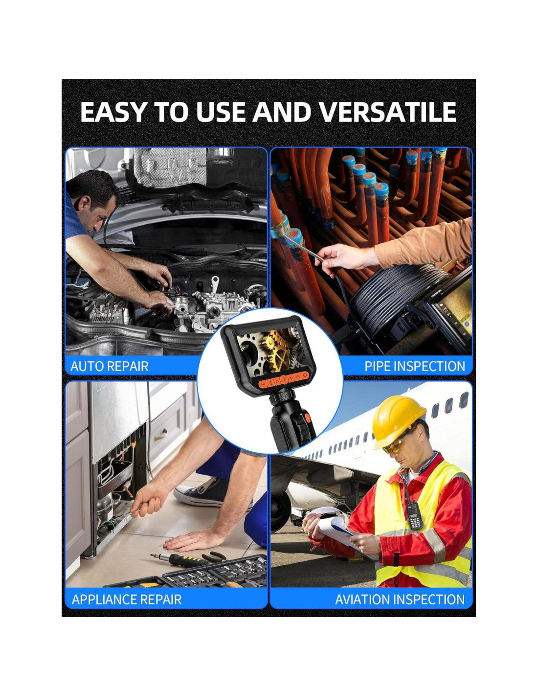 - [Cámara Endoscópica Articulada Profesional de 180 ] La innovadora cámara de inspección articulada puede inspeccionar fácil y completamente el motor dentro del automóvil, reduciendo la relación de flexión en ambos lados en 34 mm y permitiendo una rotación flexible en un espacio pequeño. El endoscopio articulado es fácil de operar y eficiente, y puede convertir 3 horas de trabajo en 15 minutos. La función de cámara rotativa te permite alcanzar la posición dentro del sistema complejo que deseas ver, que anteriormente