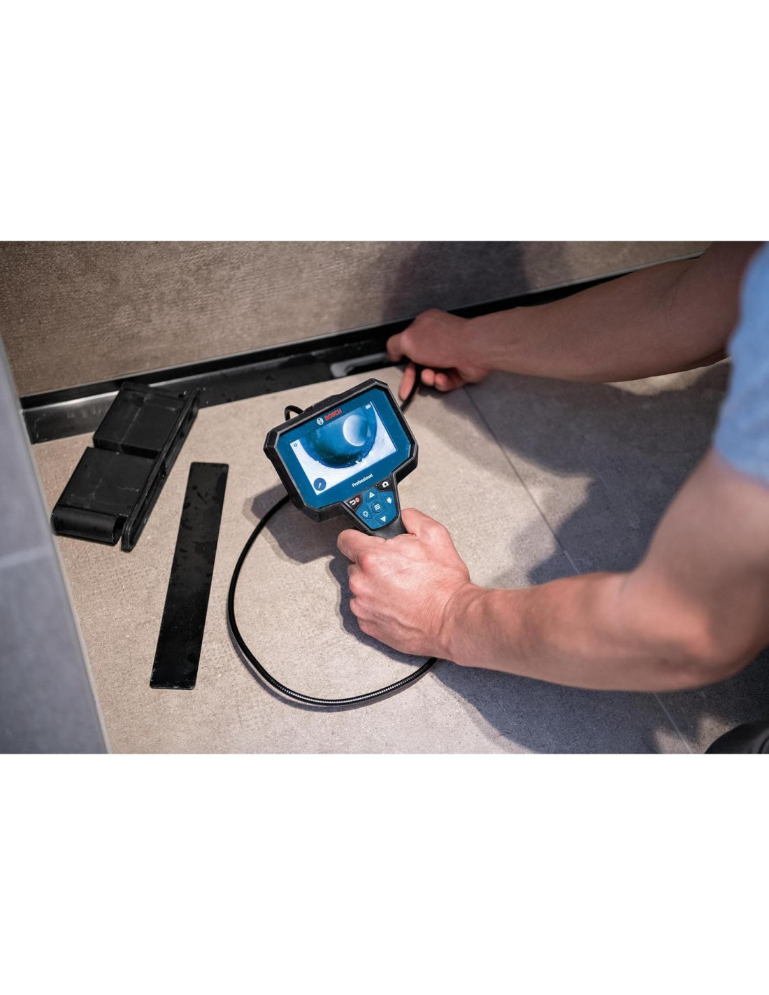 La cámara de inspección portátil Bosch GIC4-23C de 12V Max conectada de 5 pies cuenta con una pantalla de 4 pulgadas de alta resolución, fácil de ver, que asegura una inspección detallada y profunda en cada giro. El cable de la cámara de 5 pies ayuda a navegar en espacios reducidos en el lugar de trabajo. Como una brújula, la herramienta viene equipada con un indicador hacia arriba para señalar cuál extremo está arriba. Fácil de usar, el teclado y el menú están diseñados para un manejo intuitivo del producto, con botones simples y claramente marcados para ajustar la vista de la cámara y la iluminación. La documentación es importante y la capacidad de la cámara para capturar fotos ayuda en la creación de informes y análisis adicionales. Con la conectividad integrada, transfiere archivos fácilmente a través del cable USB-C incluido y visualízalos de un vistazo en la galería. Diseñada para la comodidad, el mango ergonómico del dispositivo minimiza la fatiga de la mano para duraciones de inspección más largas. La carcasa de goma combinada con la clasificación IP67 (cable de la cámara) y IP54 (herramienta, no incluye batería y compartimento de batería) ofrece una protección mejorada en el trabajo. La cámara de inspección es alimentada de manera eficiente por el sistema de batería Bosch de 12V Max para una fiabilidad duradera.