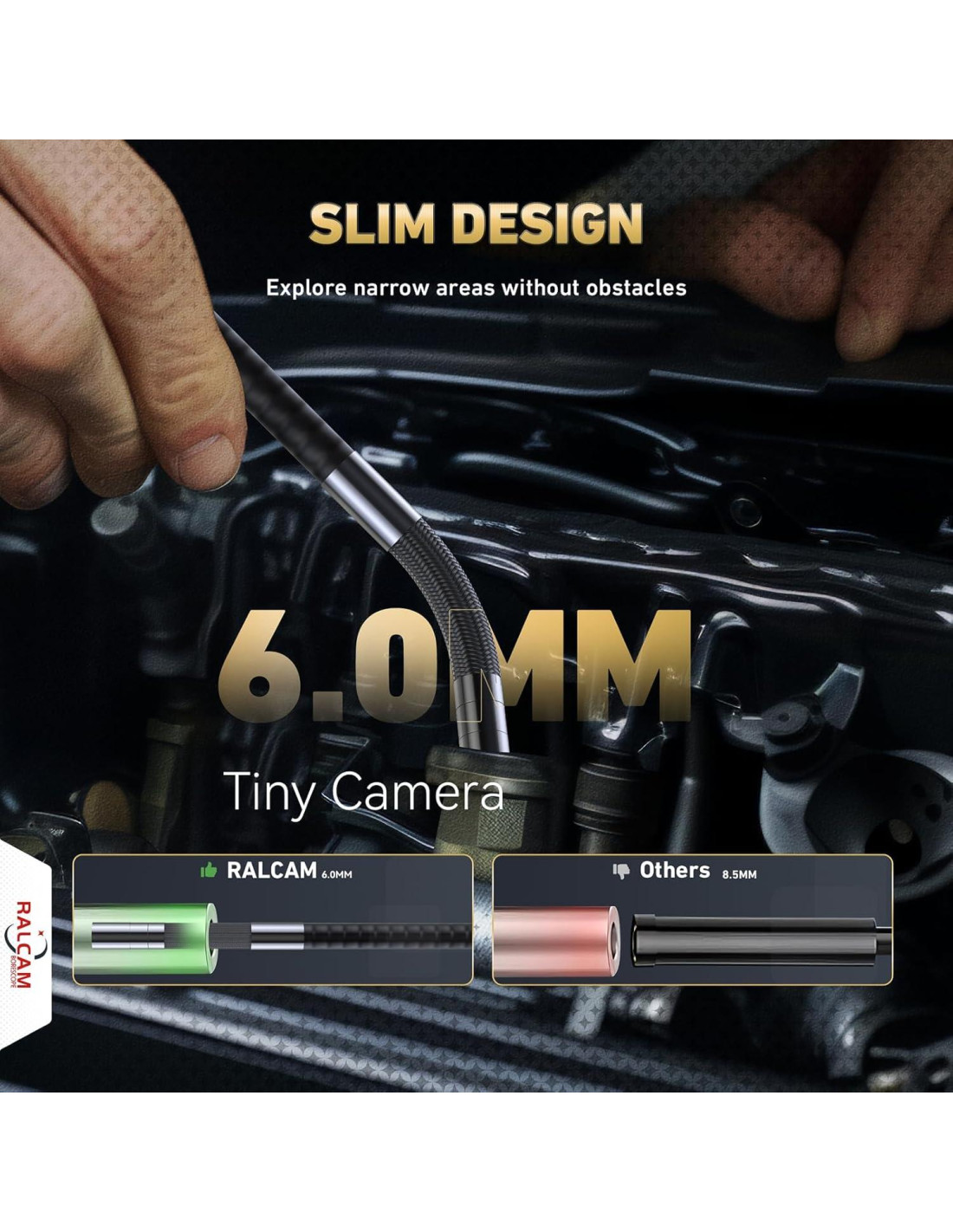 - [Tubo Trenzado de Tungsteno Profesional y Resistente] La sonda de borescopio articulada Ralcam de 6.0mm permite una observación de vista completa de 360 para más detalles de inspección. Adoptado sensor CMOS de 1.0 megapíxel, la cámara de endoscopio ajustable puede grabar video en tiempo real muy claro para ayudarte a encontrar el problema