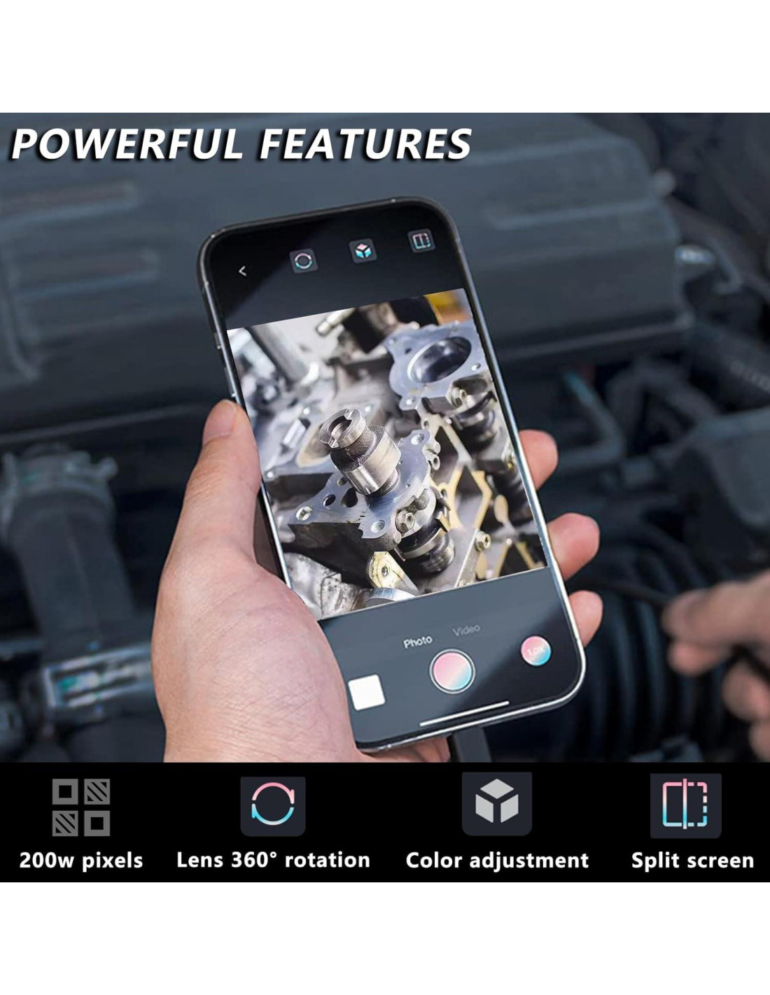 - Cámara de Serpiente HD: Nuestros endoscopios vienen con una sonda de 2.0M píxeles. Soporta móviles iPhone, Android y iPad, puede tomar fotos o grabar videos directamente en tu teléfono. Captura videos e imágenes HD de cerca con una impresionante resolución de 1920x1440