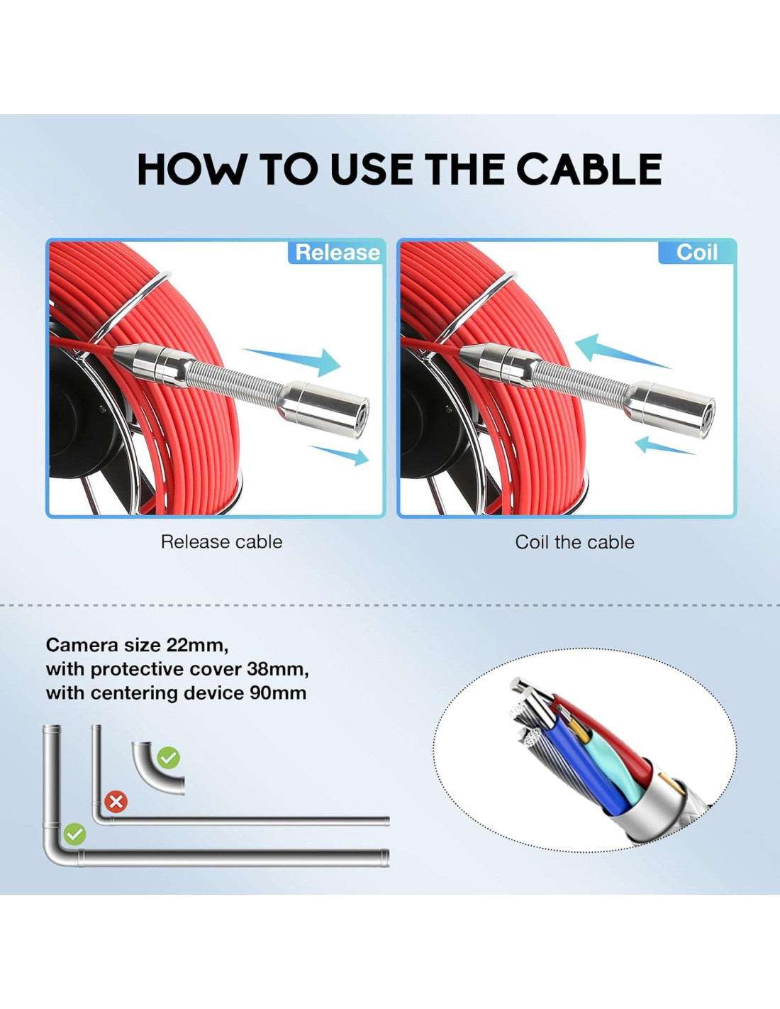 Este endoscopio de tuberías se utiliza principalmente para tuberías de suministro de agua, tuberías de aire acondicionado, tuberías de cables, sistemas de vacío de tuberías, tuberías de la industria del plomo, tuberías de construcción subterránea, trabajos de rescate en espacios pequeños, exploración de cuevas subterráneas e investigación submarina. Puede identificar las necesidades de enseñanza de paneles de yeso para localizar fugas y ayudar a resolver problemas. La cámara de alcantarillado tiene una pantalla de 4.3 pulgadas y una tarjeta de almacenamiento de 16GB incorporada. Tiene una cámara a prueba de agua de acero inoxidable IP68 con 12 luces LED blancas ajustables. Viene con una batería de 5600MAH y una tubería de fibra de alta resistencia con un diámetro de 4.8mm, con una longitud de cable de 20M o 30.5M.