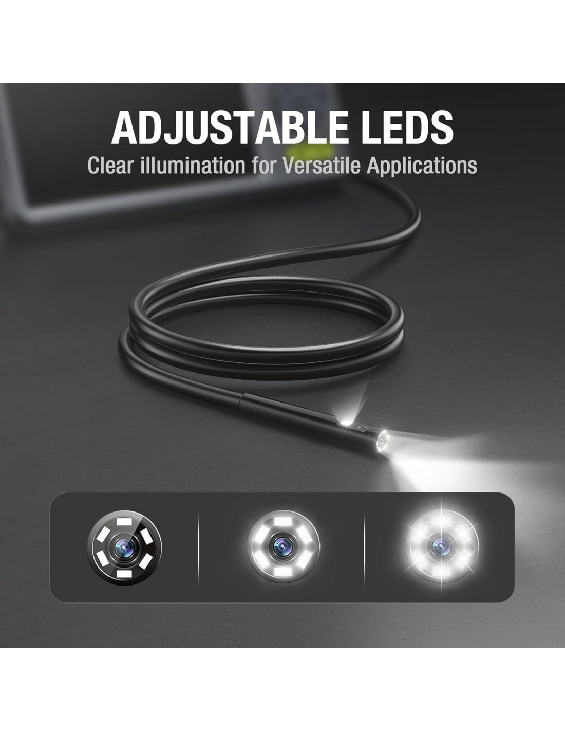 - Sonda Súper Delgado de 5.5mm para Espacios Estrechos: La sonda ultra delgada de 5.5mm se desliza fácilmente en espacios reducidos como agujeros de bujías o conductos estrechos. Combinada con la longitud flexible de 1.52m, ofrece una maniobrabilidad excepcional, siendo ideal para inspecciones detalladas en áreas estrechas donde otras herramientas tienen dificultades para alcanzar.