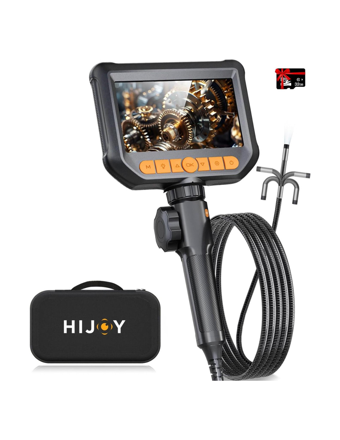 - Visualización de 360 con Articulación de 180: No más luchas con alcances rígidos. Nuestro Borescopio Hijoy cuenta con una cámara articulada de 180 para una fácil maniobrabilidad. Tu viaje de inspección acaba de volverse más fácil