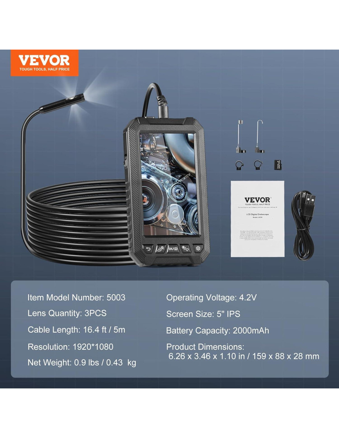 - Un Endoscopio, Múltiples Usos: El borescopio industrial VEVOR le ayuda a localizar problemas invisibles y solucionarlos rápidamente. Es perfecto para motores de automóviles, revisiones de alcantarillado, conductos de HVAC, tuberías industriales y más. Diga adiós a los espacios de difícil acceso.