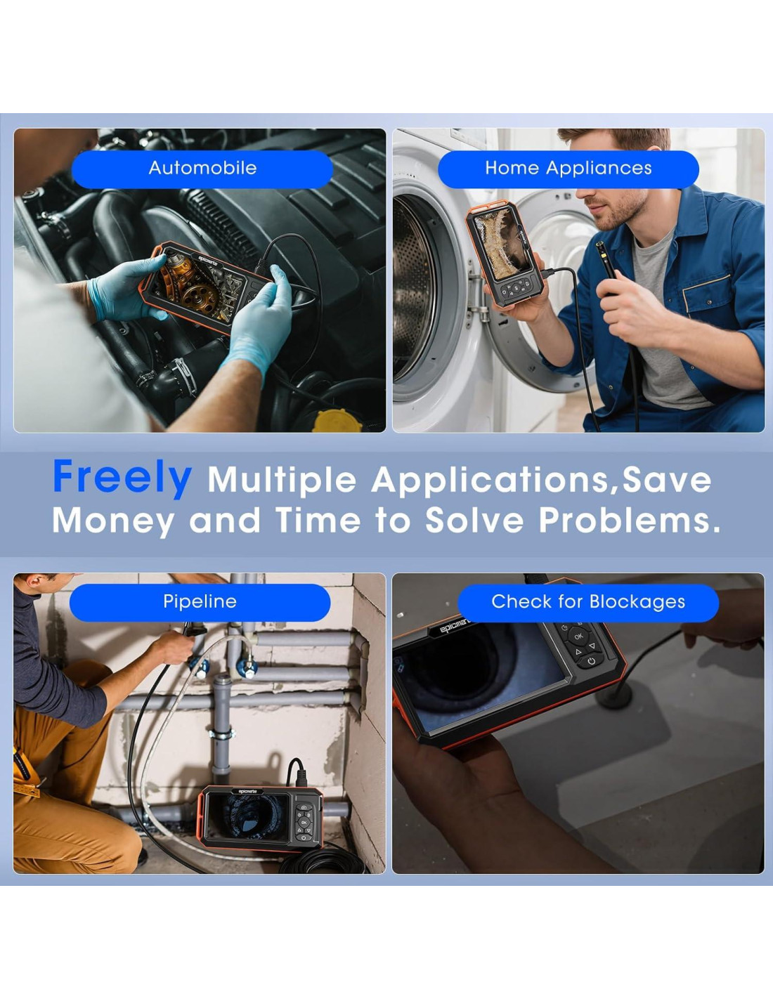 - Fácil Configuración y Múltiples Aplicaciones: Se puede usar tan pronto como se enciende, ahorrando tiempo. Este endoscopio tiene un amplio rango de aplicaciones, incluyendo mantenimiento y reparación de automóviles, verificación de bloqueos en tuberías, y también se puede usar para ver espacios estrechos que son difíciles de entrar, como debajo de camas o detrás de televisores, proporcionando gran conveniencia para la vida diaria.