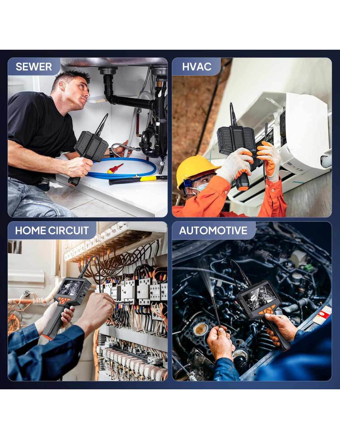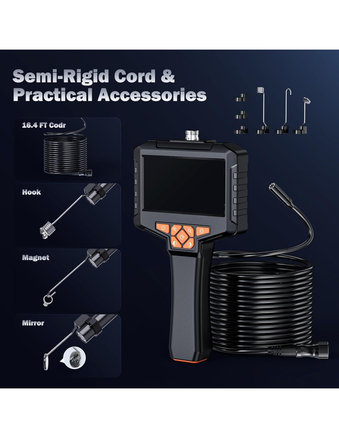 - Sonda Endoscópica Mejorada: Tecnología de sonda única de 7.8mm. Combinada con una sonda integrada de 7.8mm y cámara HD. Cable adicional incorporado de 50ft. Mejor para ayudarnos a ver problemas en entornos internos estrechos.