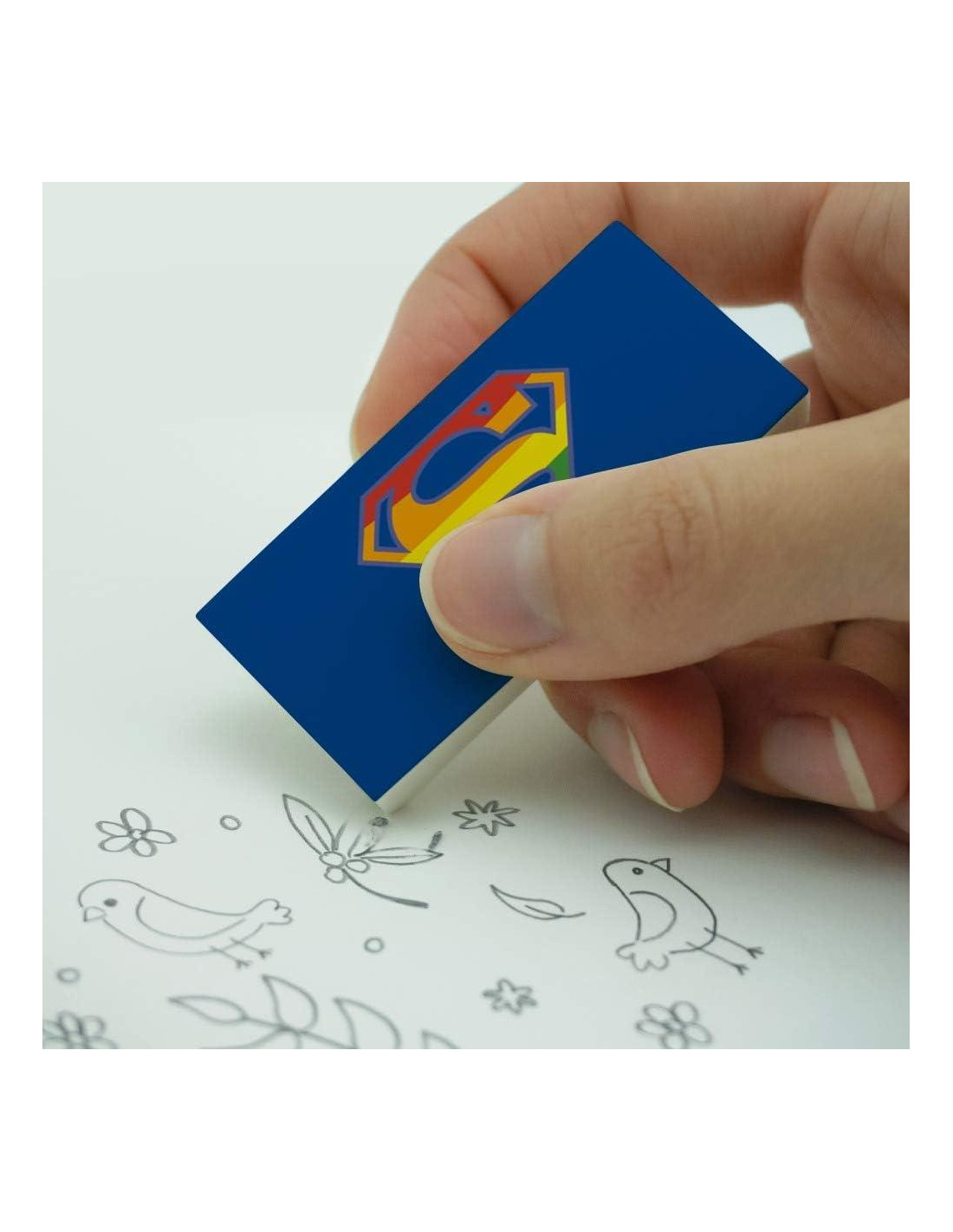 Acerca del producto: Borra tus errores con este nuevo set de borradores de Graphics and More! Cada set incluye 2 borradores, que son perfectos para tener uno en casa y otro en la escuela/trabajo! Con una biblioteca tan extensa de diseños para elegir, es más que probable que encuentres uno que no te desagrade! Cada borrador mide aproximadamente 2.5" (6.4cm) x 1.2" (3.1cm) x 0.4" (1.0cm) y tiene la imagen mostrada impresa en un lado. Acerca del diseño: Superman fue creado por Jerry Siegel y Joe Shuster. La historia atemporal de un bebé alienígena enviado a la Tierra desde el moribundo planeta Krypton, Superman ha aparecido en innumerables cómics de DC, caricaturas, películas y mucho más, luchando por la Verdad y la Justicia. Si eres fan, ¡te encantará este producto oficial de Superman!