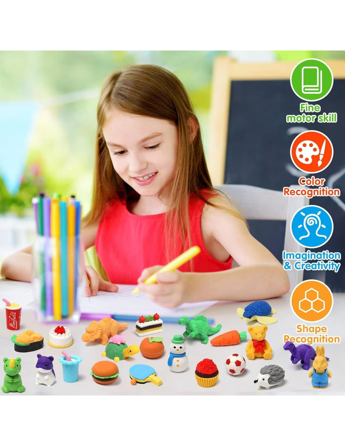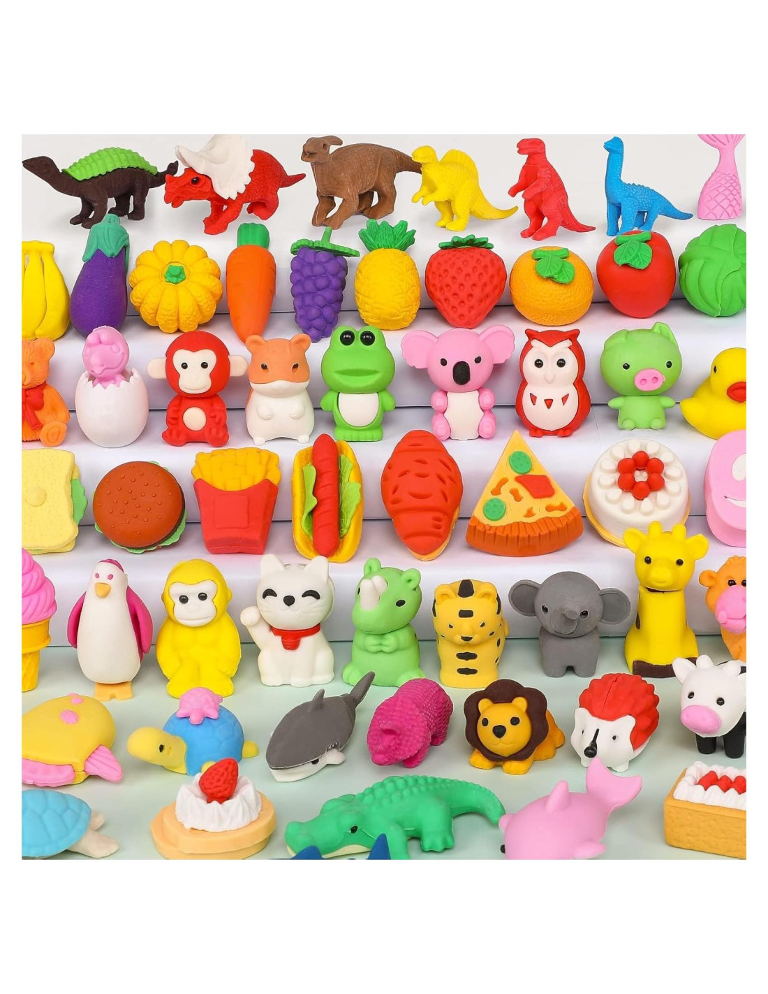 - Excelente Premio para el Aula: Una variedad de borradores lindos, gran surtido para la mayoría de los niños. Grandes ideas para favores de fiestas de cumpleaños, recompensas en el aula, premios de caja de tesoros, suministros para el aula, mascotas de escritorio, rellenos de piñata, truco o trato, Navidad, rellenos de bolsas de sorpresas, etc. También como decoraciones para el hogar y juguetes para el hogar, perfectos suministros de regreso a clases para sus niños y niñas.