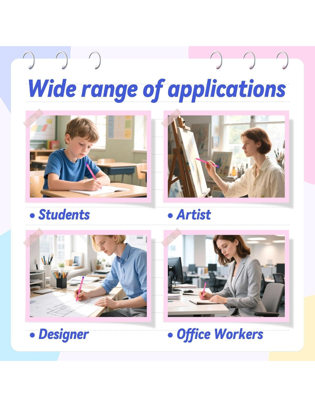 - Compacto y Amigable para Viajar: Estos borradores son perfectos para estudiantes, artistas y profesionales, encajando fácilmente en estuches, bolsas o organizadores de escritorio para conveniencia en movimiento.