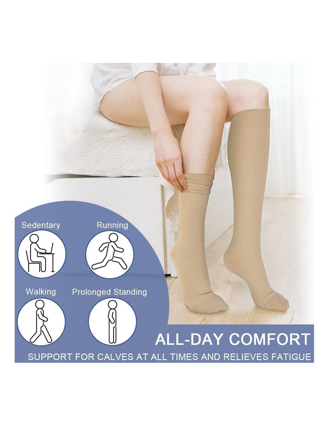 - EFECTO TERAPÉUTICO: Beister te ofrecerá calcetines de compresión bien diseñados que proporcionan compresión graduada desde el tobillo hasta la parte superior de la pantorrilla. Medias de compresión terapéutica que promueven la circulación sanguínea, ayudan a aliviar piernas cansadas, adoloridas y fatigadas. Ideal para el tratamiento de venas varicosas y arañas vasculares, soporte diabético, vuelos largos y hinchazón o inflamación general de las piernas y pies