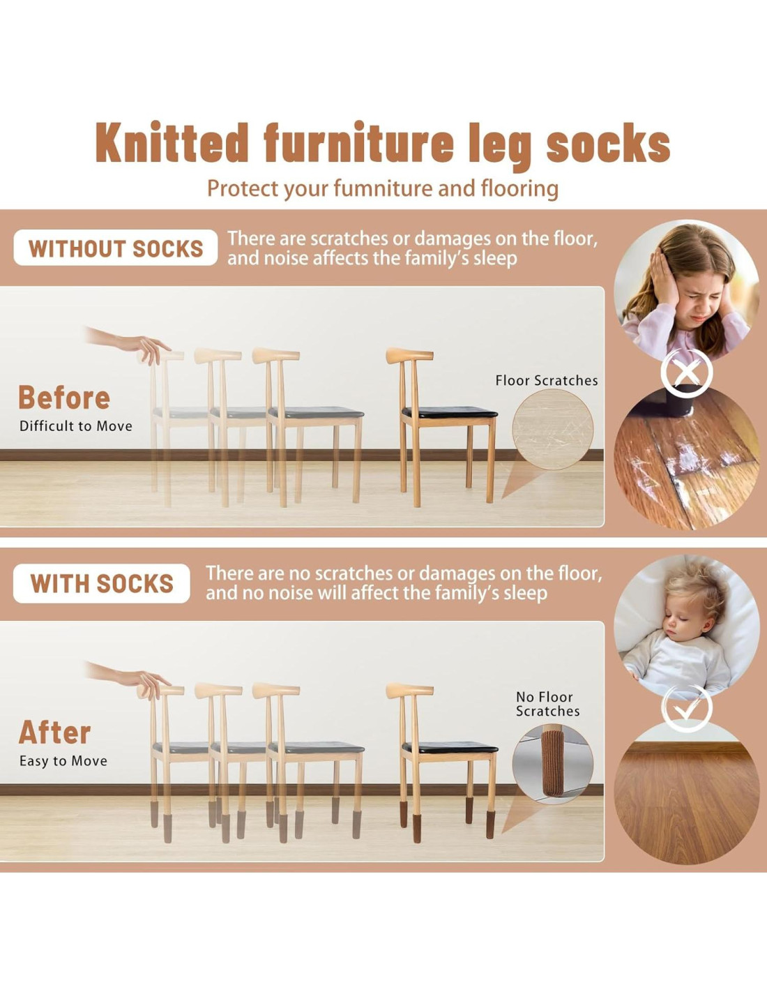 - DISEÑO PROTECTOR: Material de punto grueso crea una barrera acolchada entre las piernas de los muebles y los pisos para prevenir rasguños, marcas y ruido