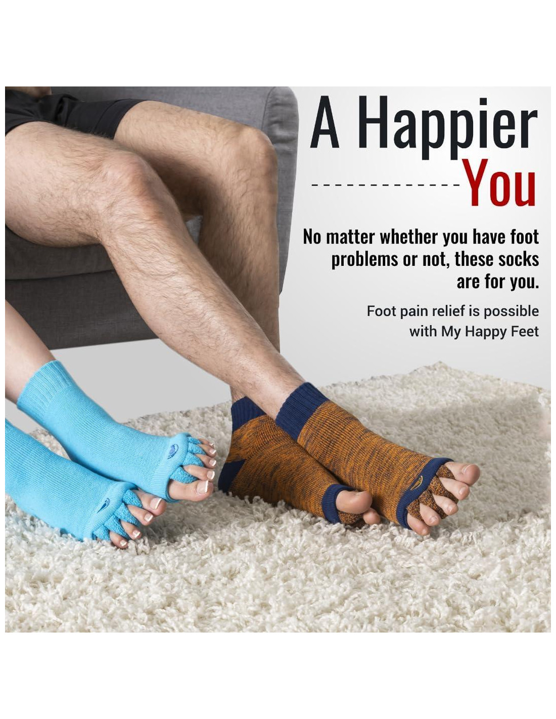 - Calcetines de Alineación de Pies Multicolor: Los Calcetines de Alineación de Pies Originales con separadores de dedos están diseñados para separar, estirar y alinear tus dedos para minimizar los efectos nocivos del estrés diario en los pies. El alivio del dolor crónico en los pies es posible con la ayuda de nuestros calcetines separadores de dedos.