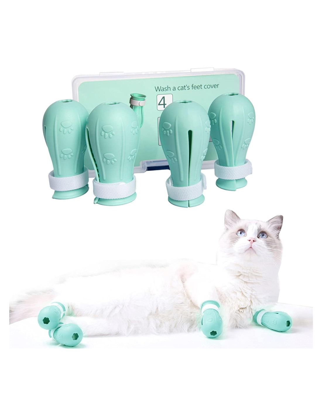 - [DISEÑO ESPECIAL] La apertura superior y el diseño de Velcro de las botas de baño para gatos las hacen ajustables en tamaño, adecuadas para todo tipo de gatos. El diseño interno de espinas puede masajear al gato mientras evita que las botas se caigan.